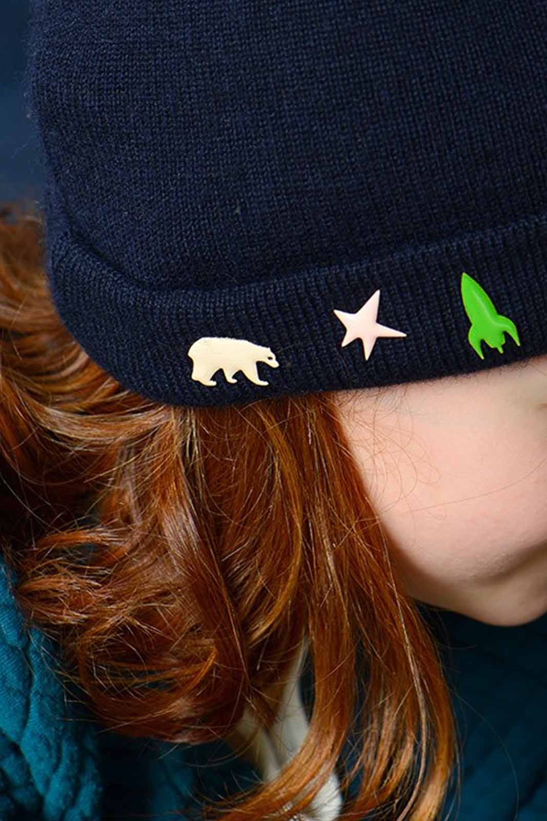 Die Pin Star von Titlee besteht aus vergoldetem Messing und hellrosanem Harz.