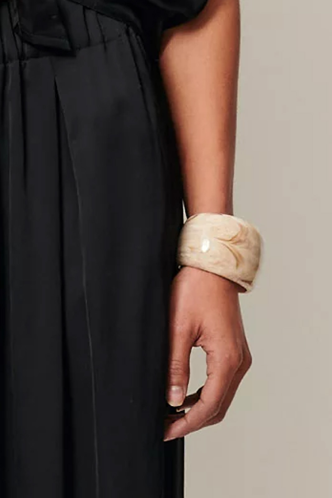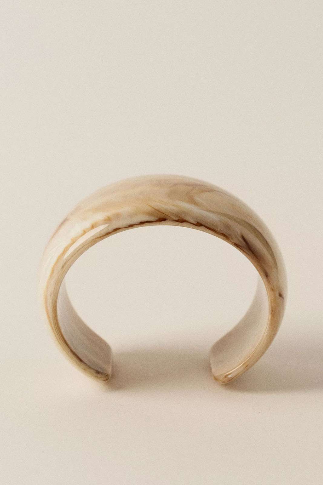 Der breiter Armreif Ambrito von Sessun besteht aus marmoriertem Kunstharz.