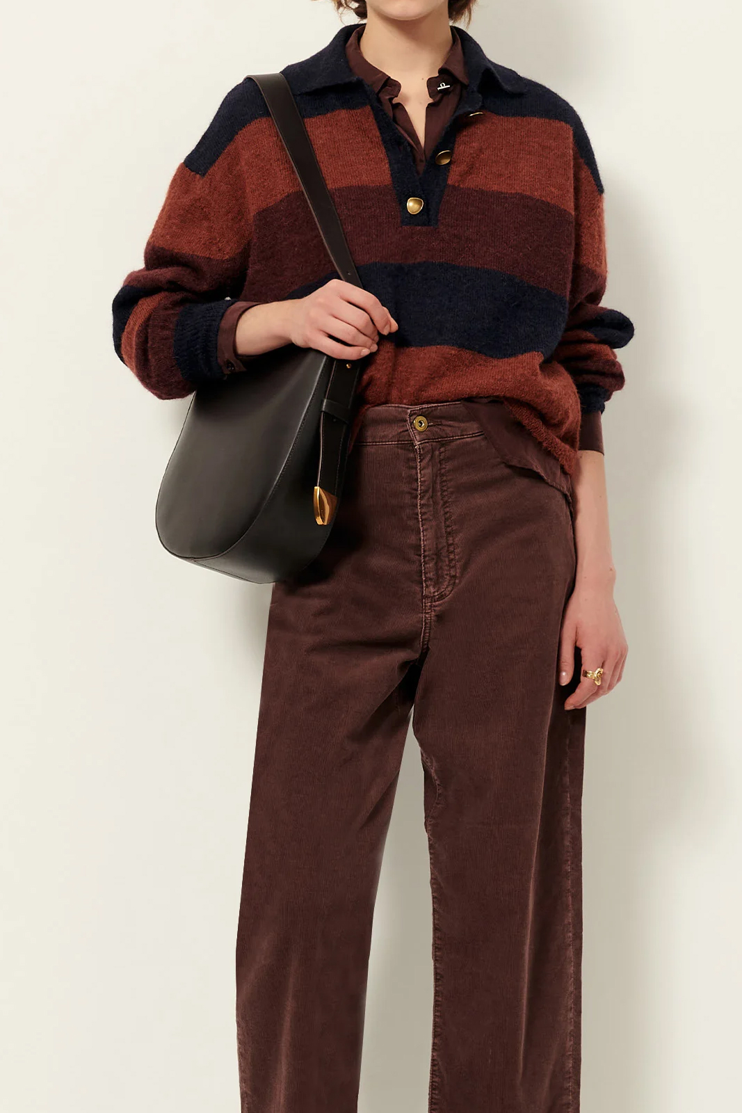 Der Pulli Cobby in der Farbe Navyrust von Sessun besteht aus 45% Alpaka, 32% Polyamid und 23% Mohair.