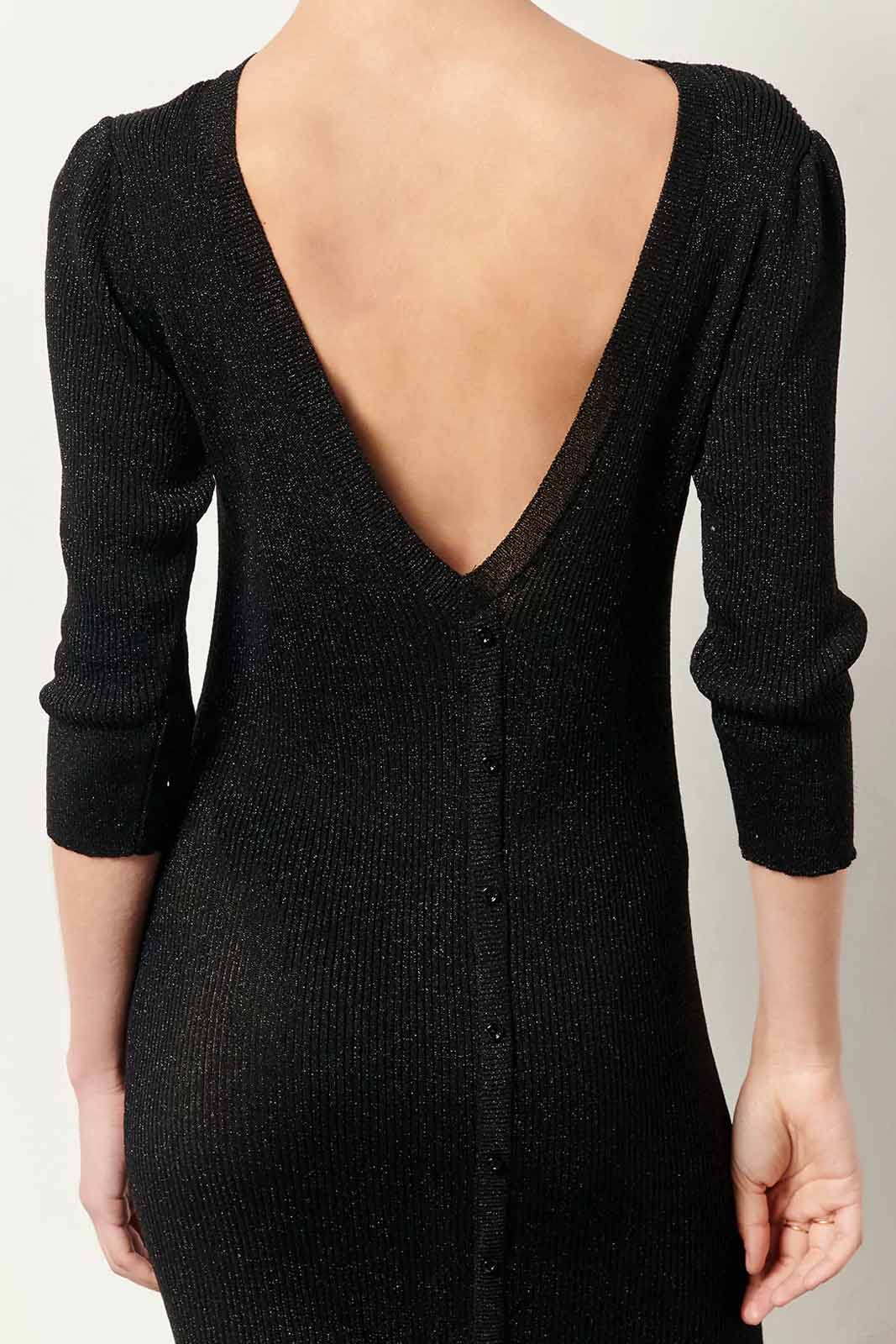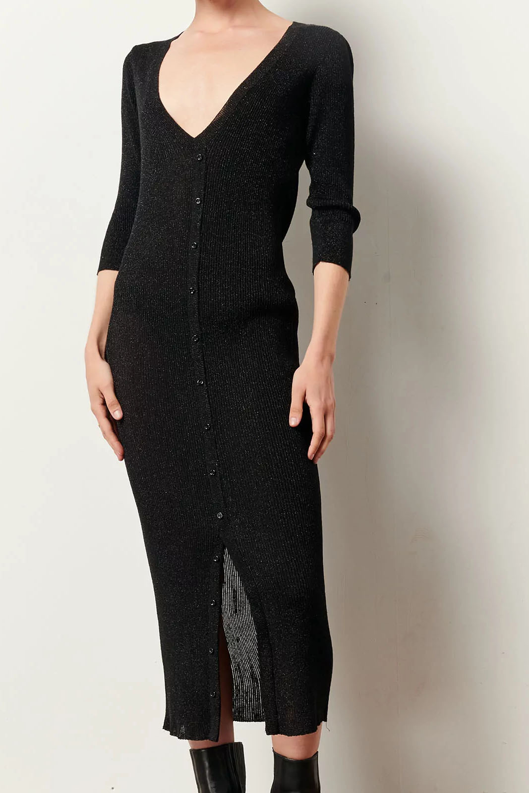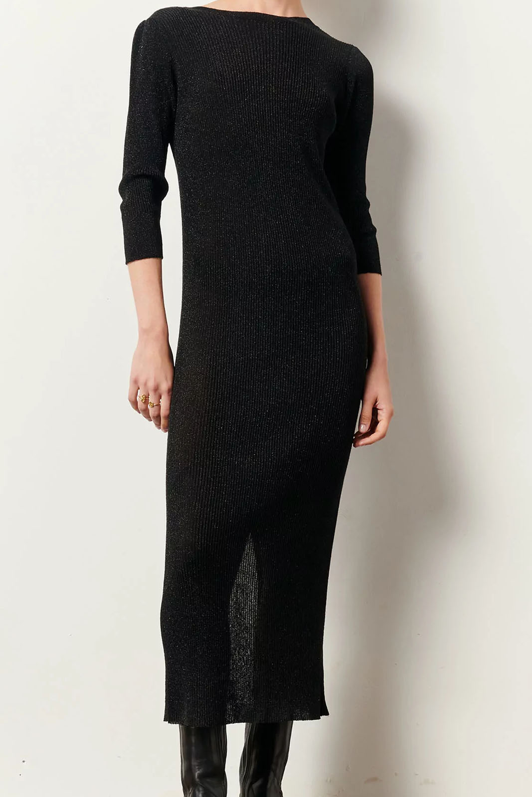 Das Strickkleid Donna in der Farbe Shiny Black von Sessun besteht aus 12% Polyamid, 68% Viscose und 13% Wolle und 7% Metalfasern.