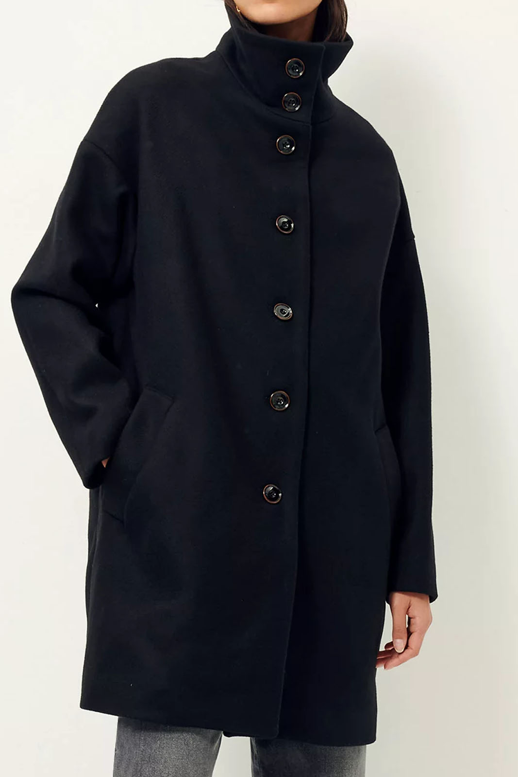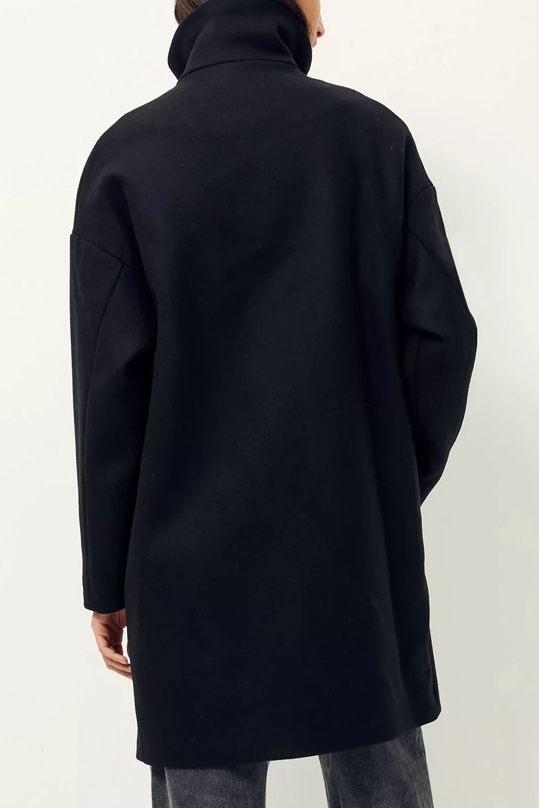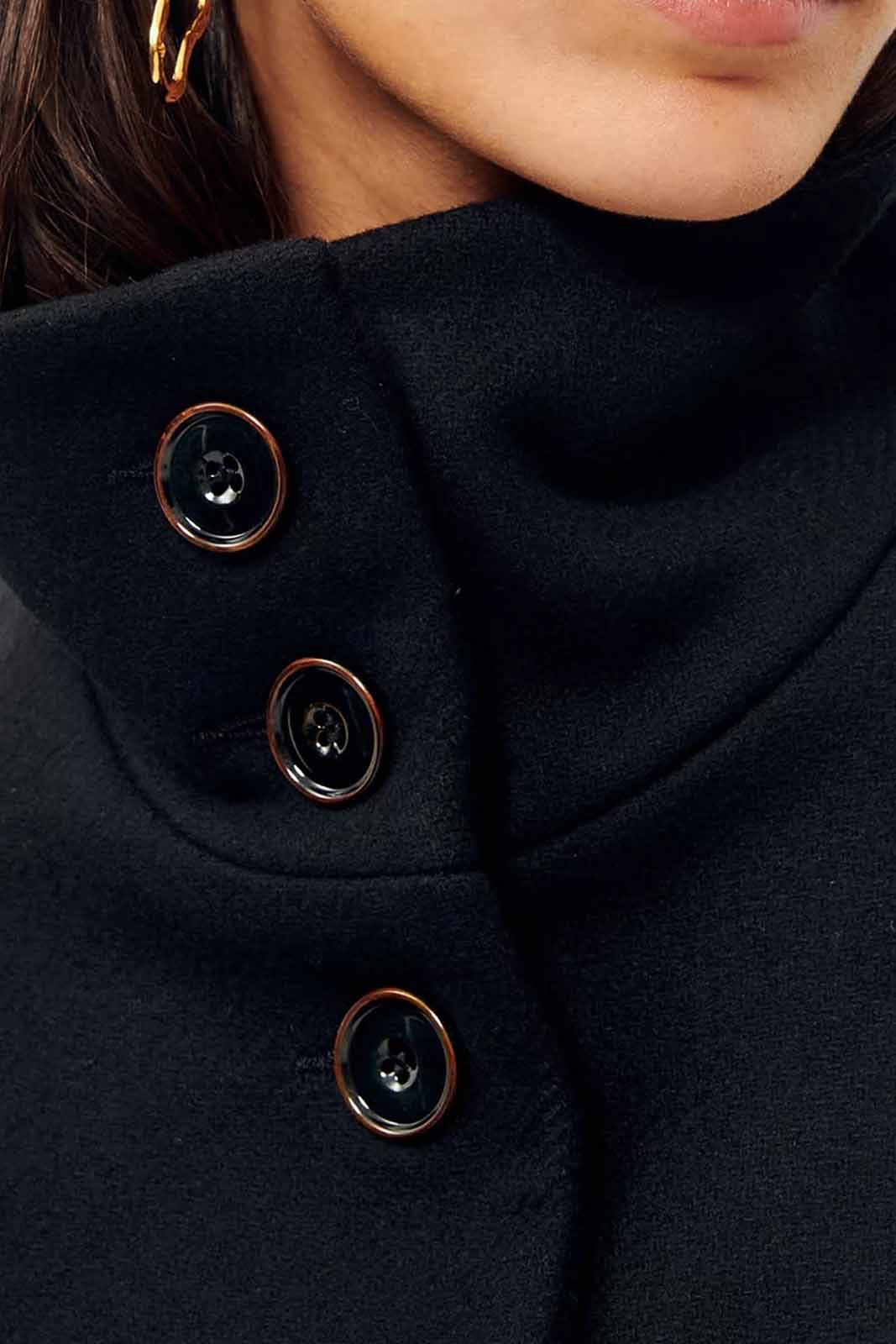Der Mantel Paradise in der Farbe Black von Sessun besteht aus 70% Wolle, 250% Polyamid und 5% anderen Fasern.