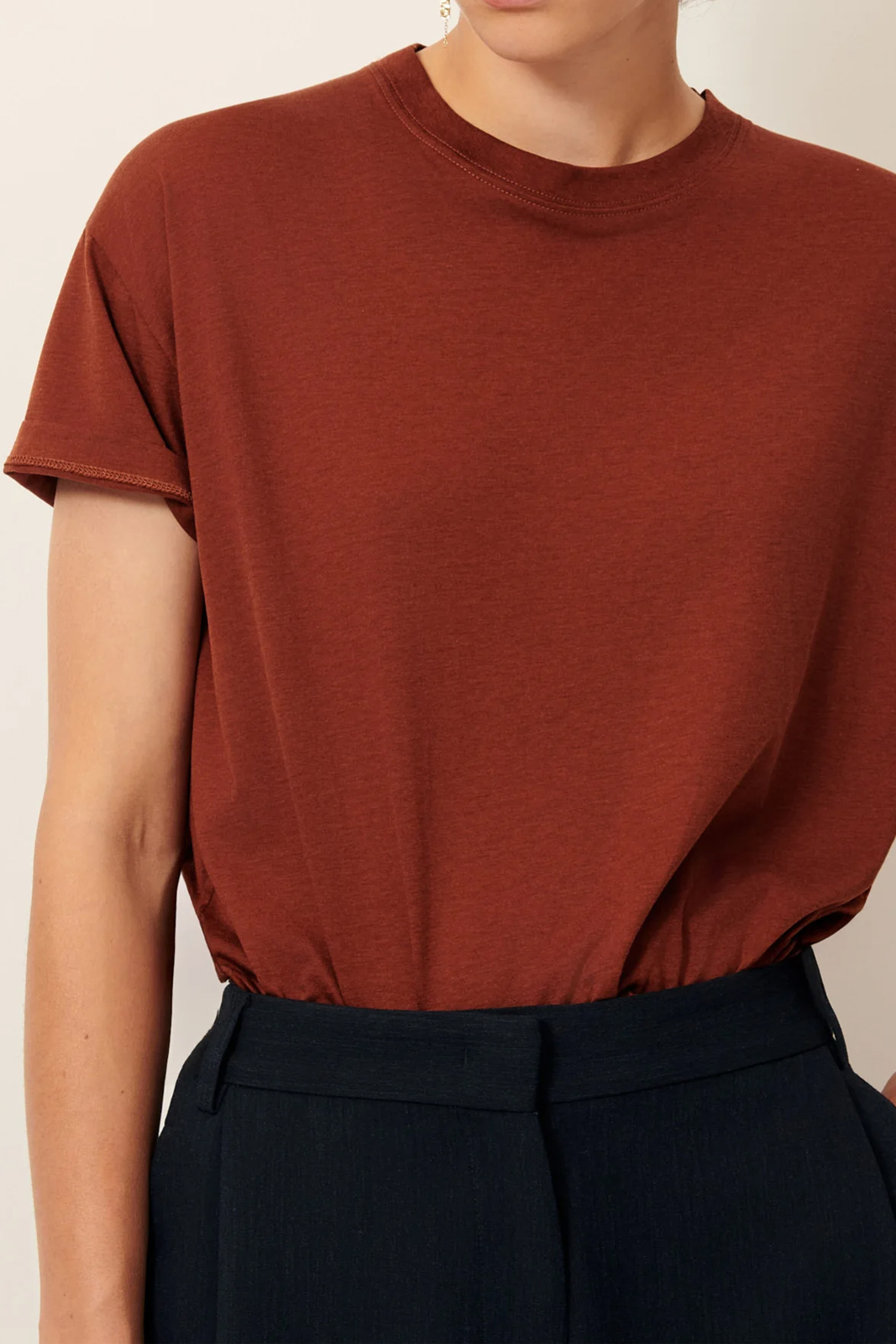 Das locker geschnittene T-Shirt Too in der Farbe Vienna von Sessun besteht aus 33% Baumwolle, 67% Lyocell. (ein weich fließendes Jersey)
