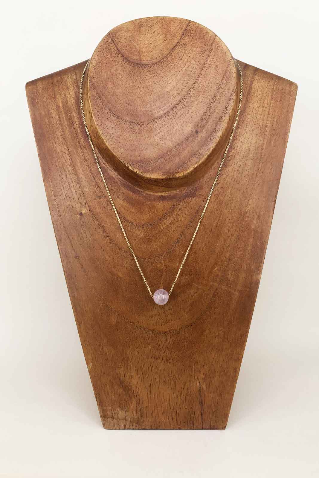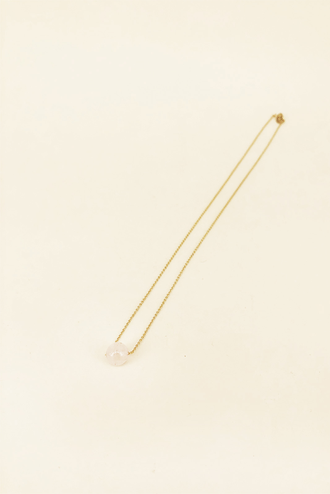Die Kette Inwood in der Farbe Dragee von Titlee besteht aus vergoldetem Messing und rosa Quarzperle.