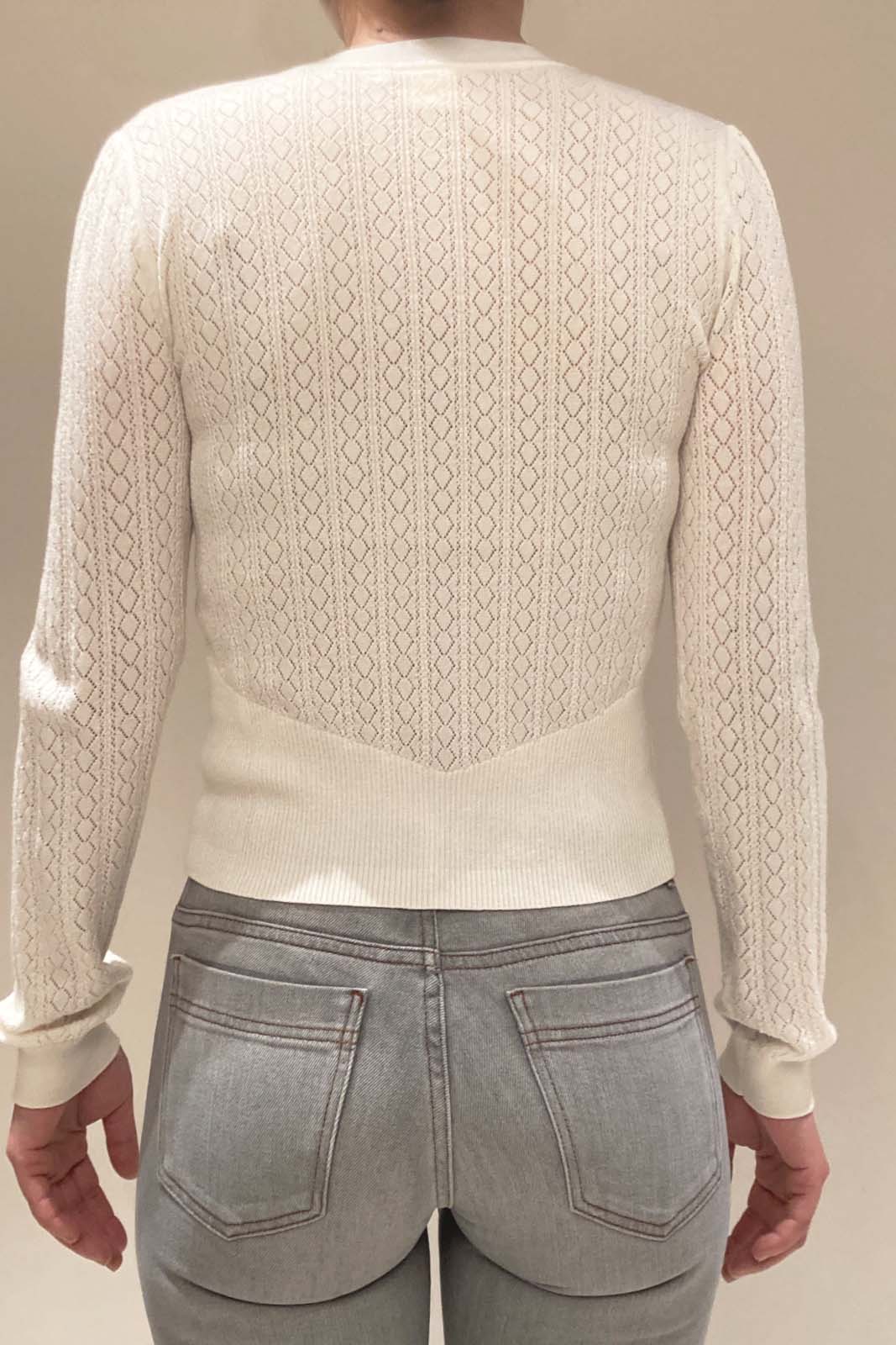 Der Pulli Angelina in der Farbe Jasmine von Marie Sixtine besteht aus 60% Viscose und 40% Wolle.
