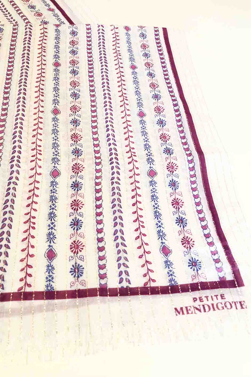 Das gemusterte Umschlagtuch Aleo in der Farbe Daisy Ecru von Petite Mendigote besteht aus 100% Baumwolle. Das Tuch kann eventuell auch als Rock wickeln.