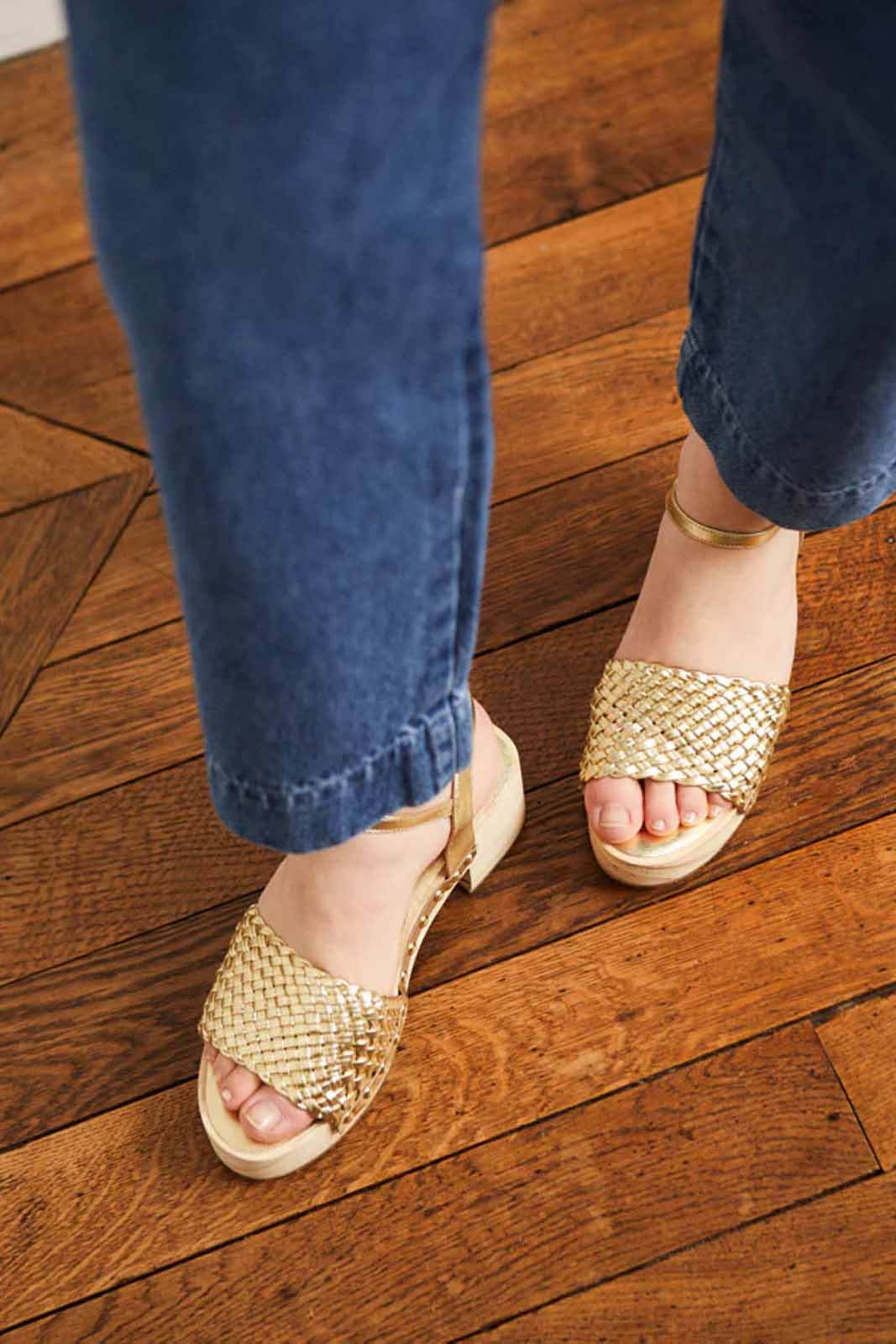 Die Sandale Kylian in der Farbe Nappa Gold von Petite Mendigote bestehen aus 100% Leder.