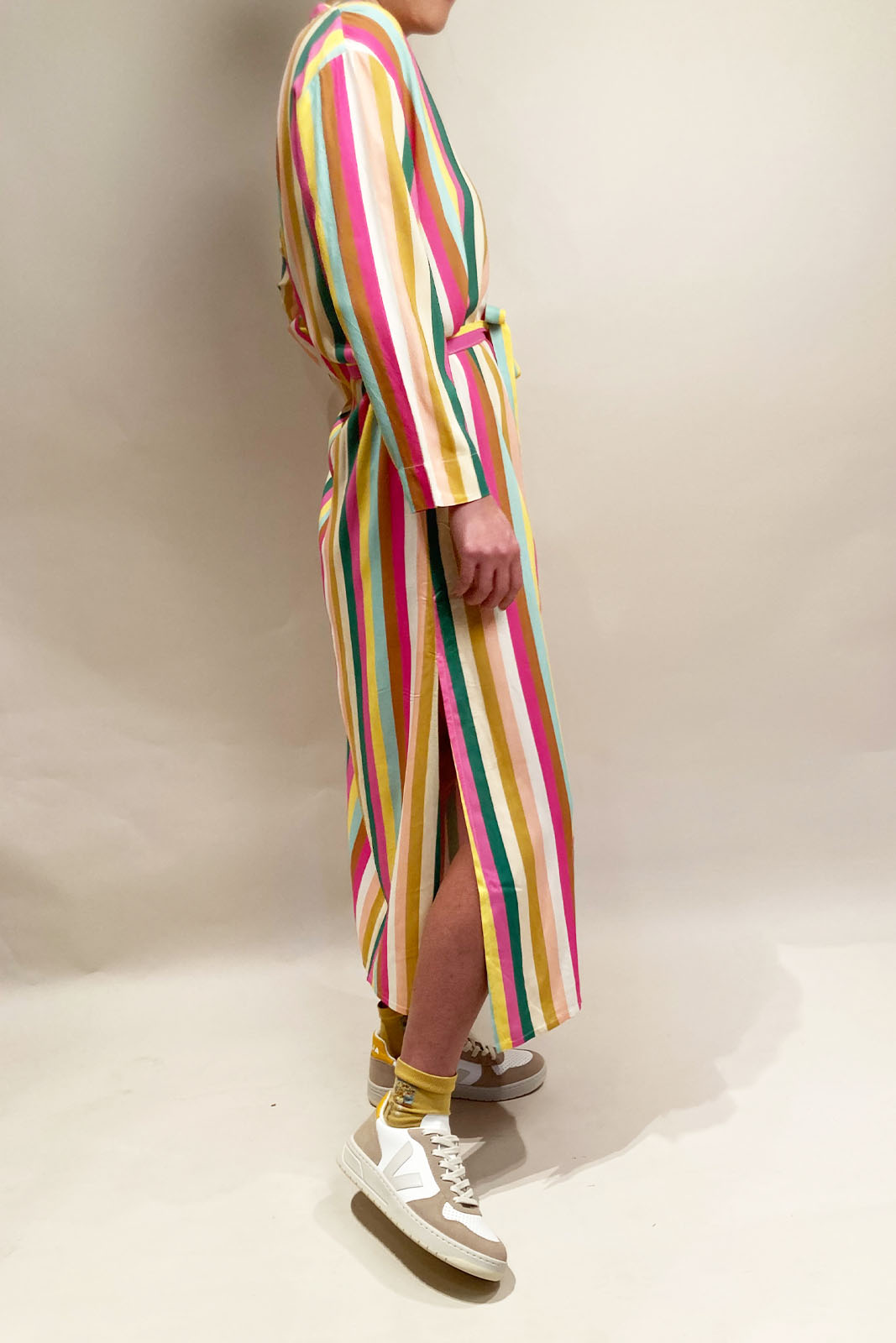 Das Kleid Tamara in der Farbe Stripes Multico von Petite Mendigote besteht aus 100% Viscose.