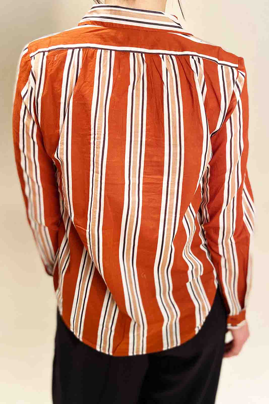Die Bluse Tatiana in der Farbe Rayure Terre von Petite Mendigote besteht aus 100% Bio Baumwolle.