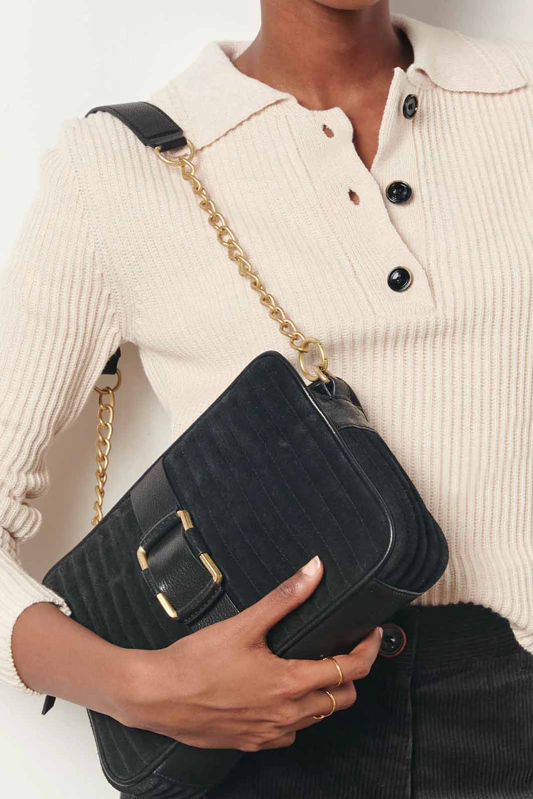 Die Tasche Alessio Mimo in der Farbe Black von Sessun besteht aus 85% Spaltleder und 15% Ziegenleder.