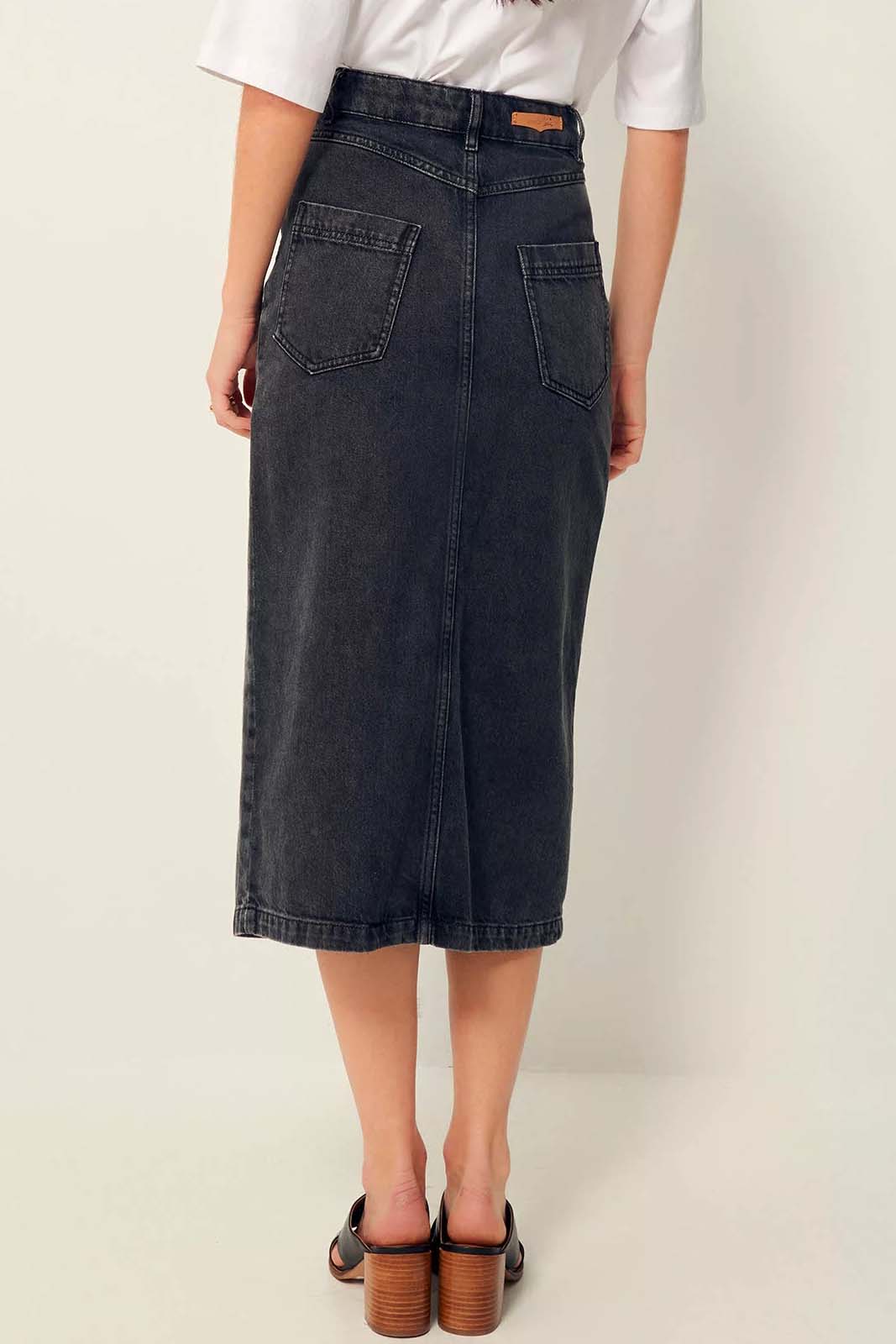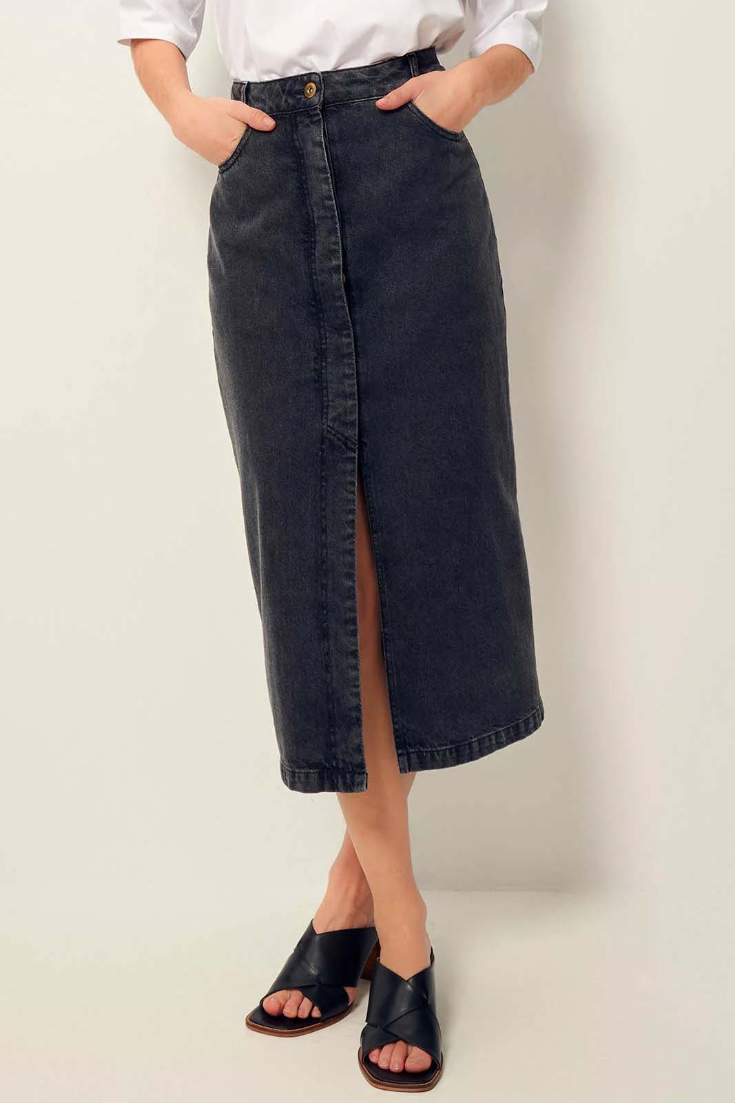 Der Denim-Rock Amadeo in der Farbe Graffit von Sessun besteht aus 100% Baumwolle.