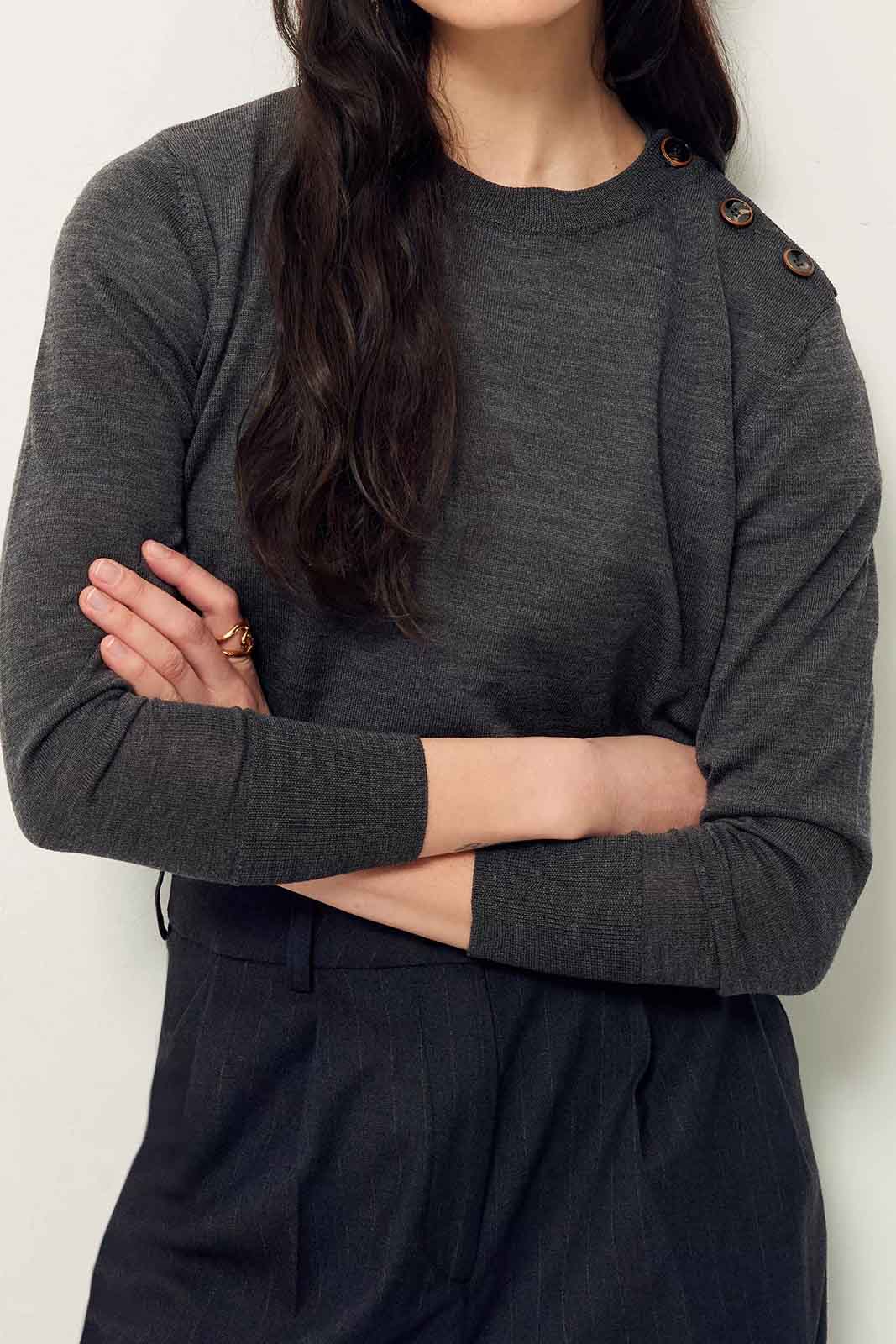 Der Pulli Amor in der Farbe Graffit von Sessun besteht aus 100% Merino-Wolle.