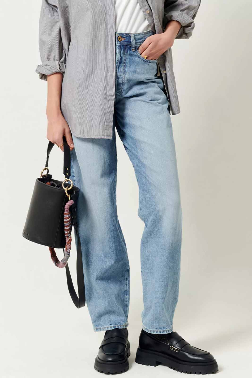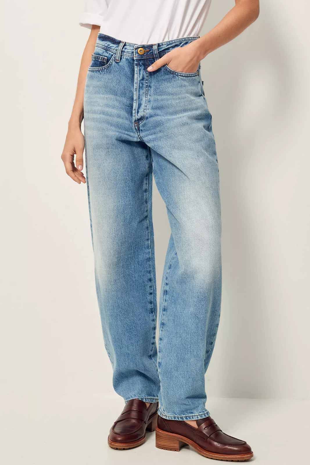 Die Baggy-Jeans Baggou in der Farbe Astral Blue von Sessun besteht aus 100% Baumwolle.