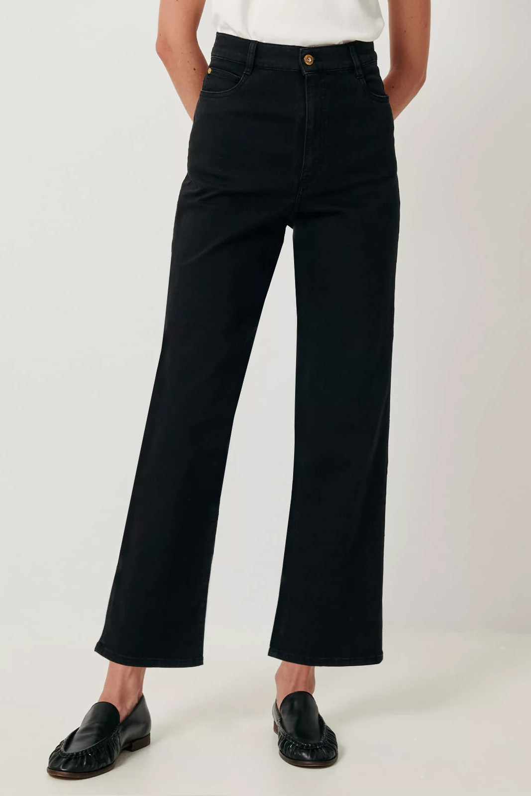 Die Jeans Bay Cruise in der Farbe Pure Black von Sessun besteht aus 78% Baumwolle, 20% Polyester, 2% Elastan.