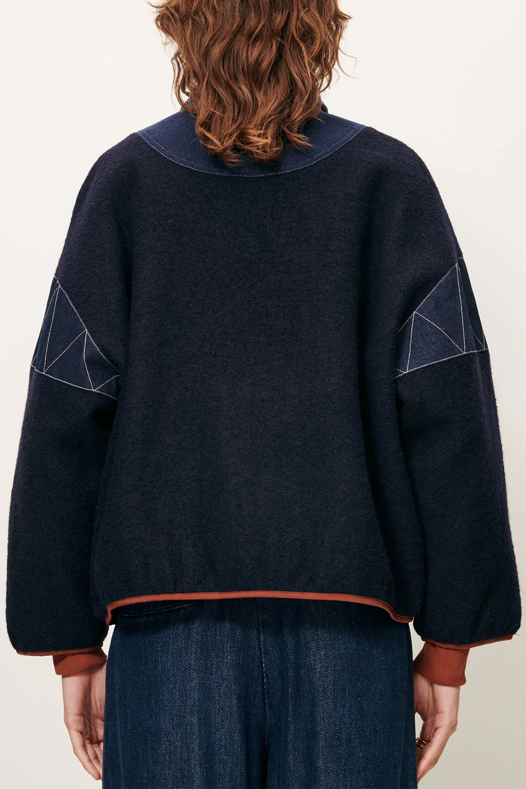 Die Jacke Cold Night in der Farbe Mood Indigo von Sessun besteht aus 100% Wolle.