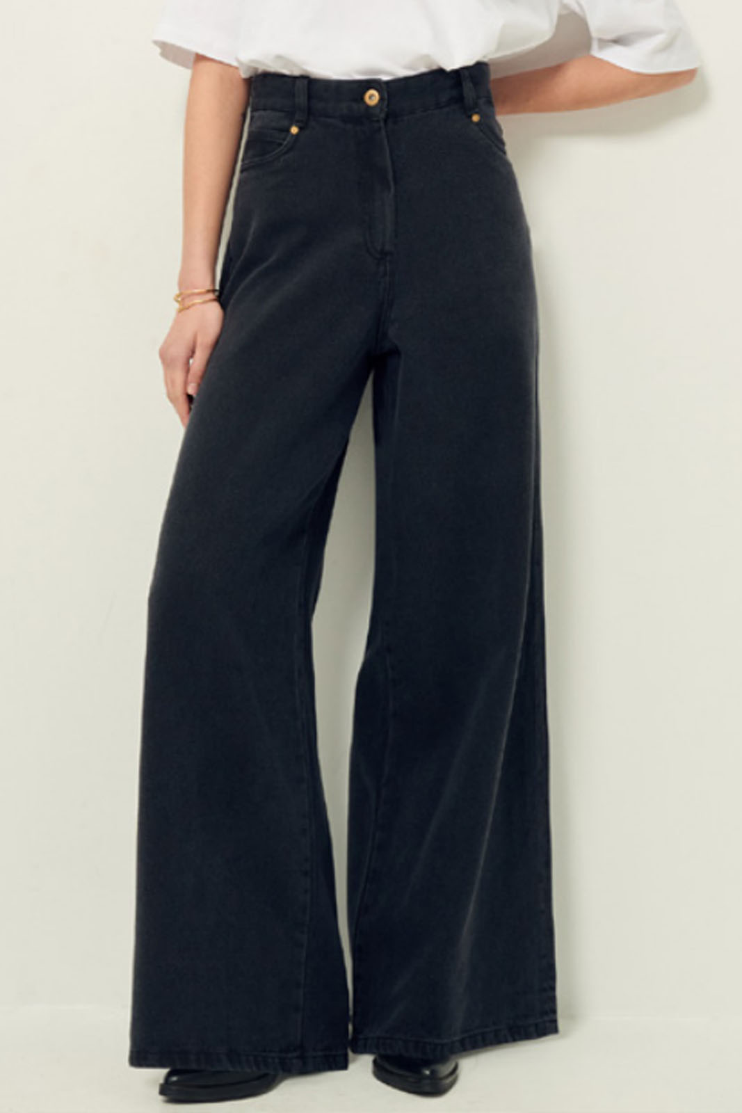 Die weit geschnittene Hose Dalt in der Farbe Black von Sessun besteht aus 100% Baumwolle.