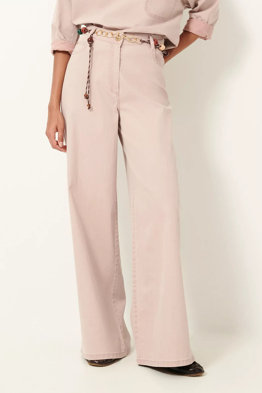 Die weit geschnittene Hose Dalt in der Farbe Rustic Rose von Sessun besteht aus 92% Baumwolle und 8% Elastan.