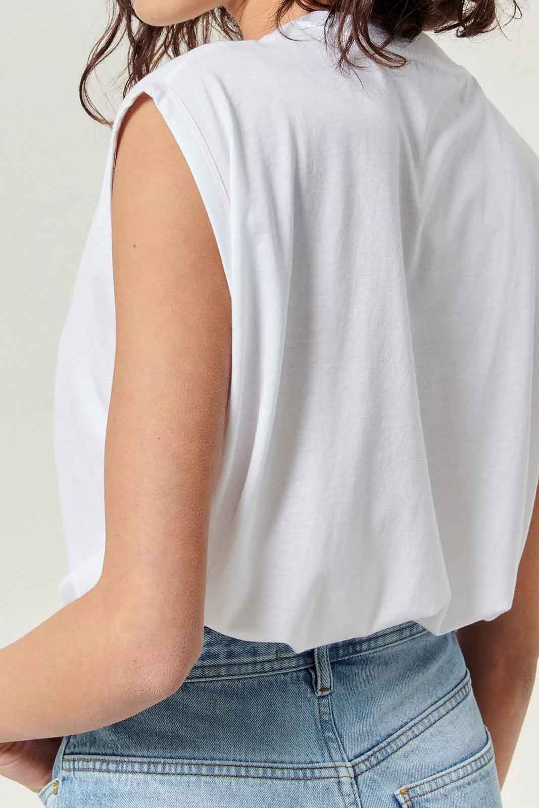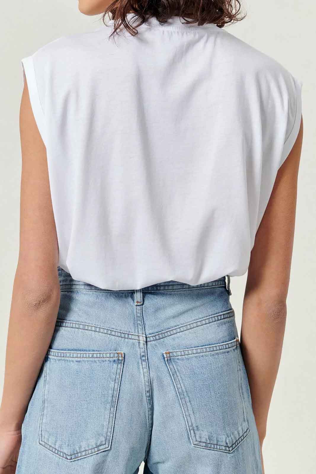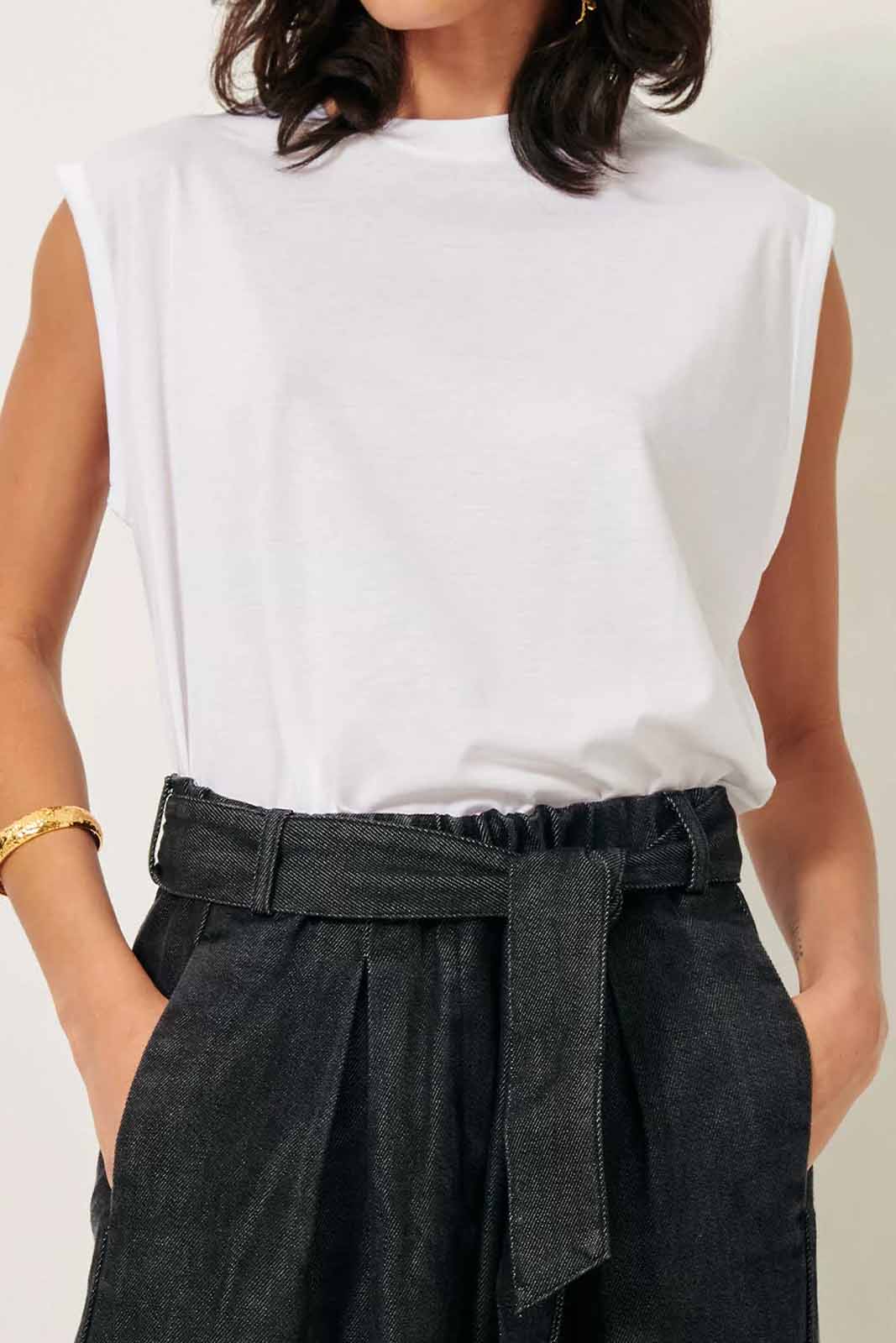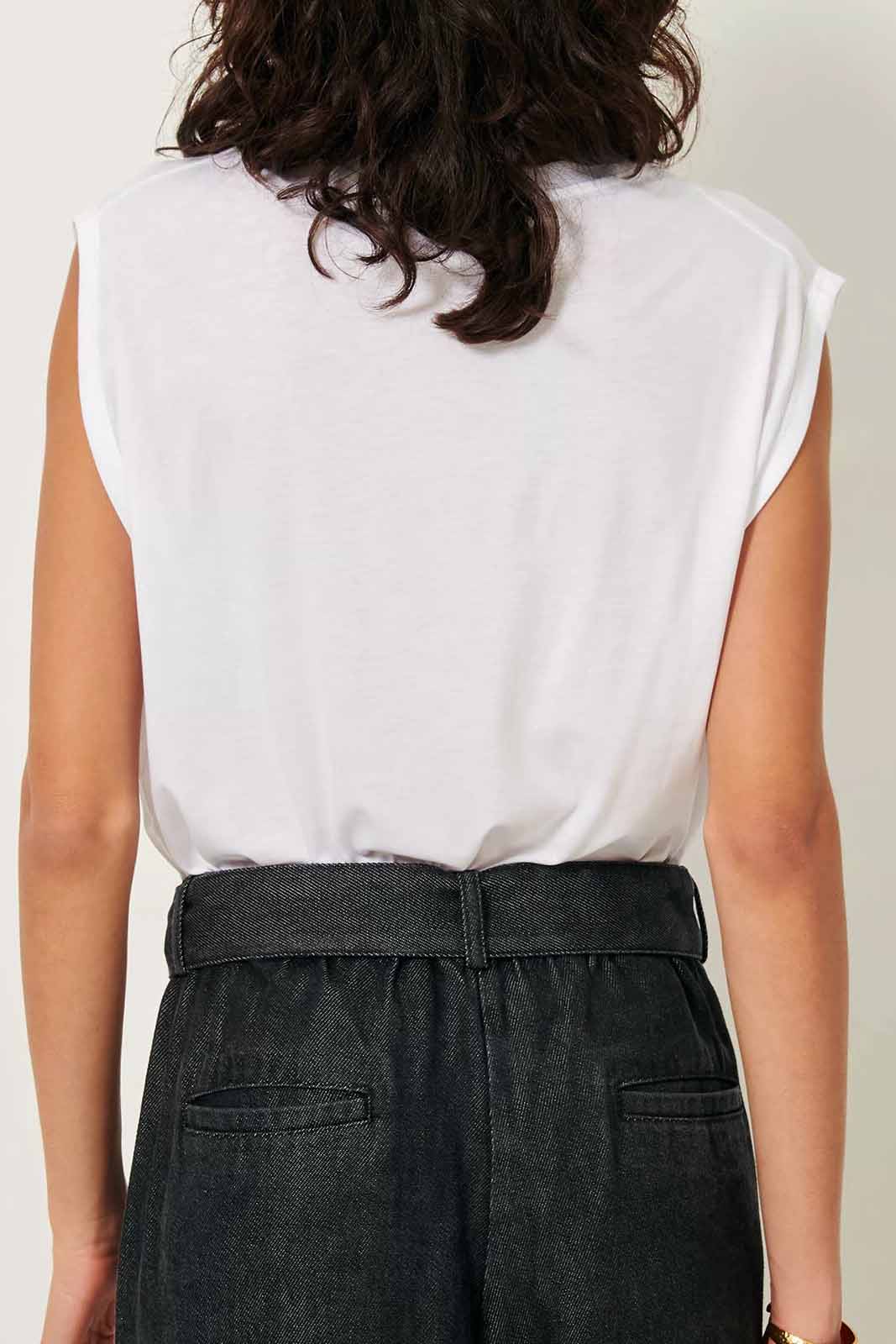 Das ärmellose T-shirt Deedoo in der Farbe Optical White von Sessun besteht aus 67% Lyocell und 33% Baumwolle.