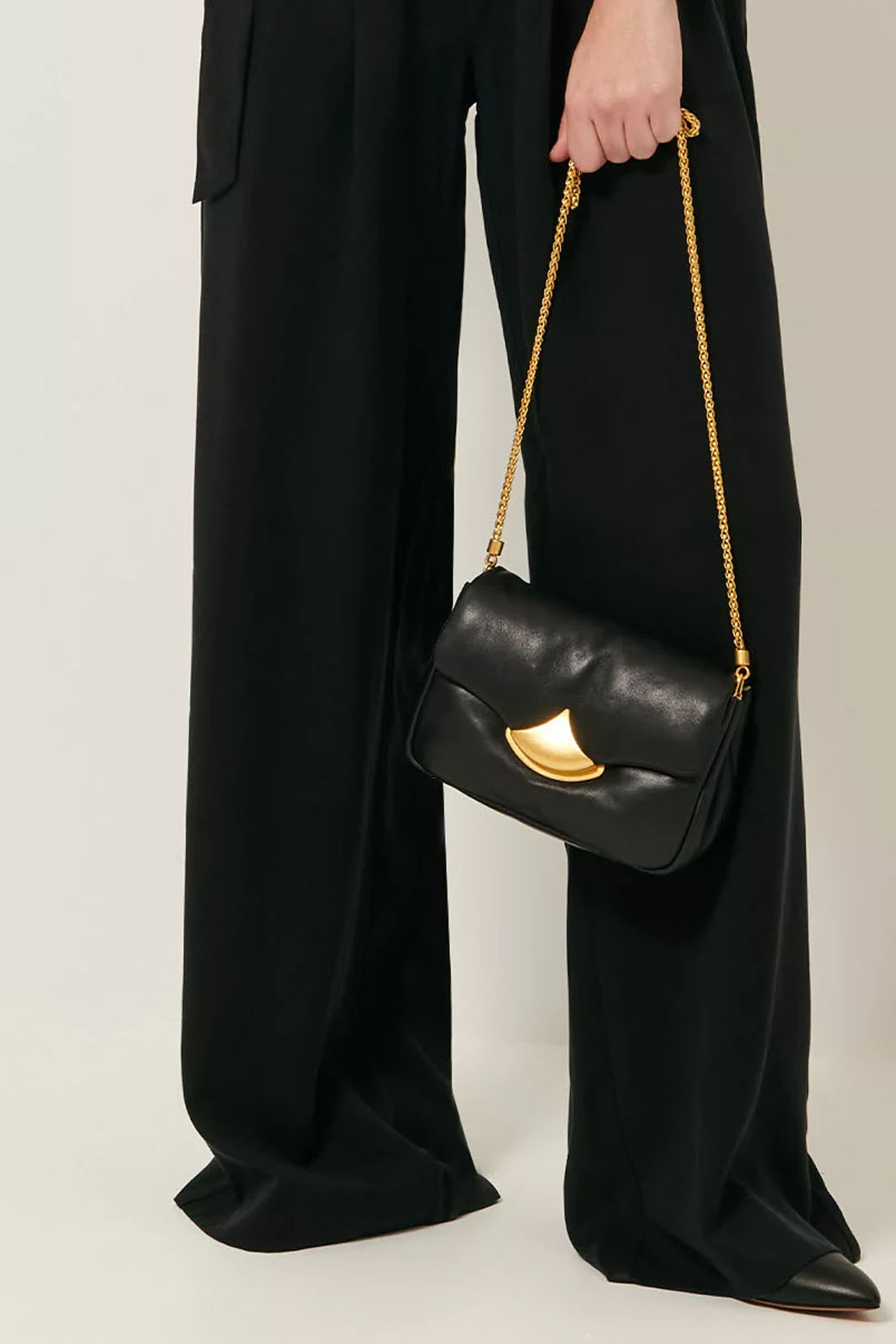 Die Tasche Diviluz Puffy in der Farbe Black von Sessun besteht aus 100% gestepptem Lammleder.