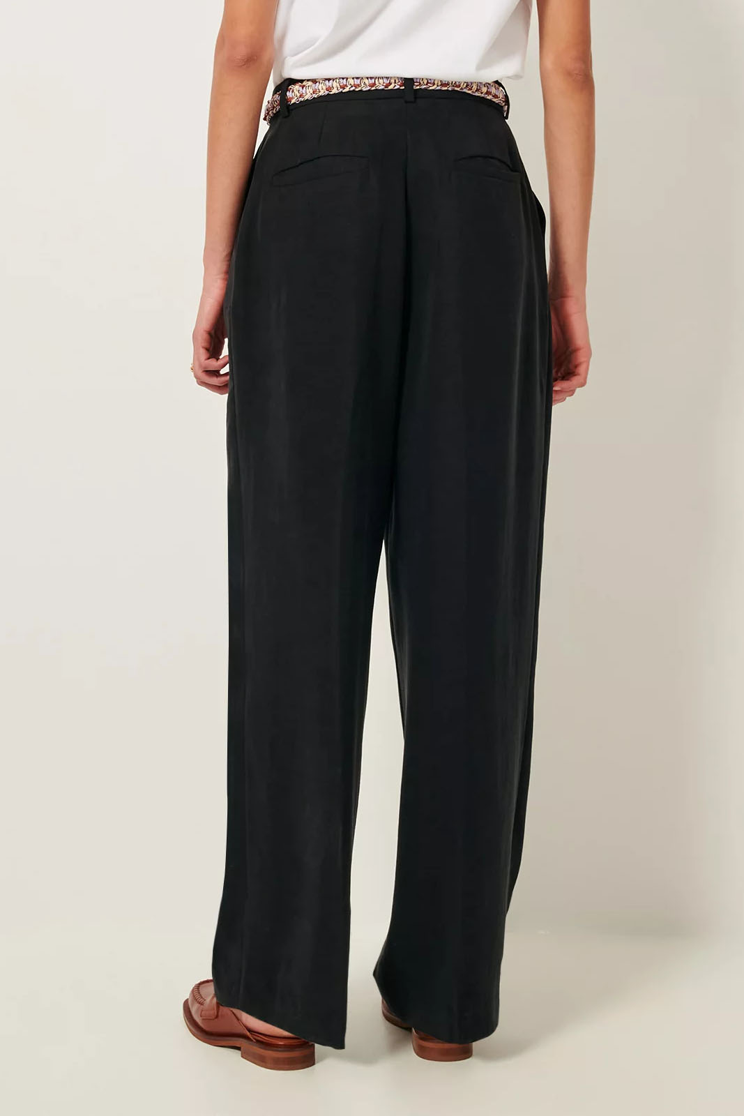 Die Hose Emile in der Farbe Moonless von Sessun besteht aus 62% Lyocell, 38% Polyester.