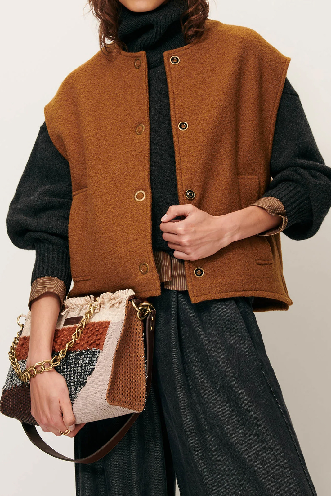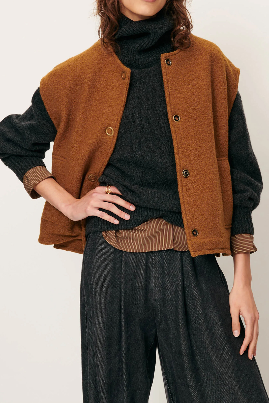Die Weste Hanzo in der Farbe Bronze von Sessun besteht aus 100% Wolle.