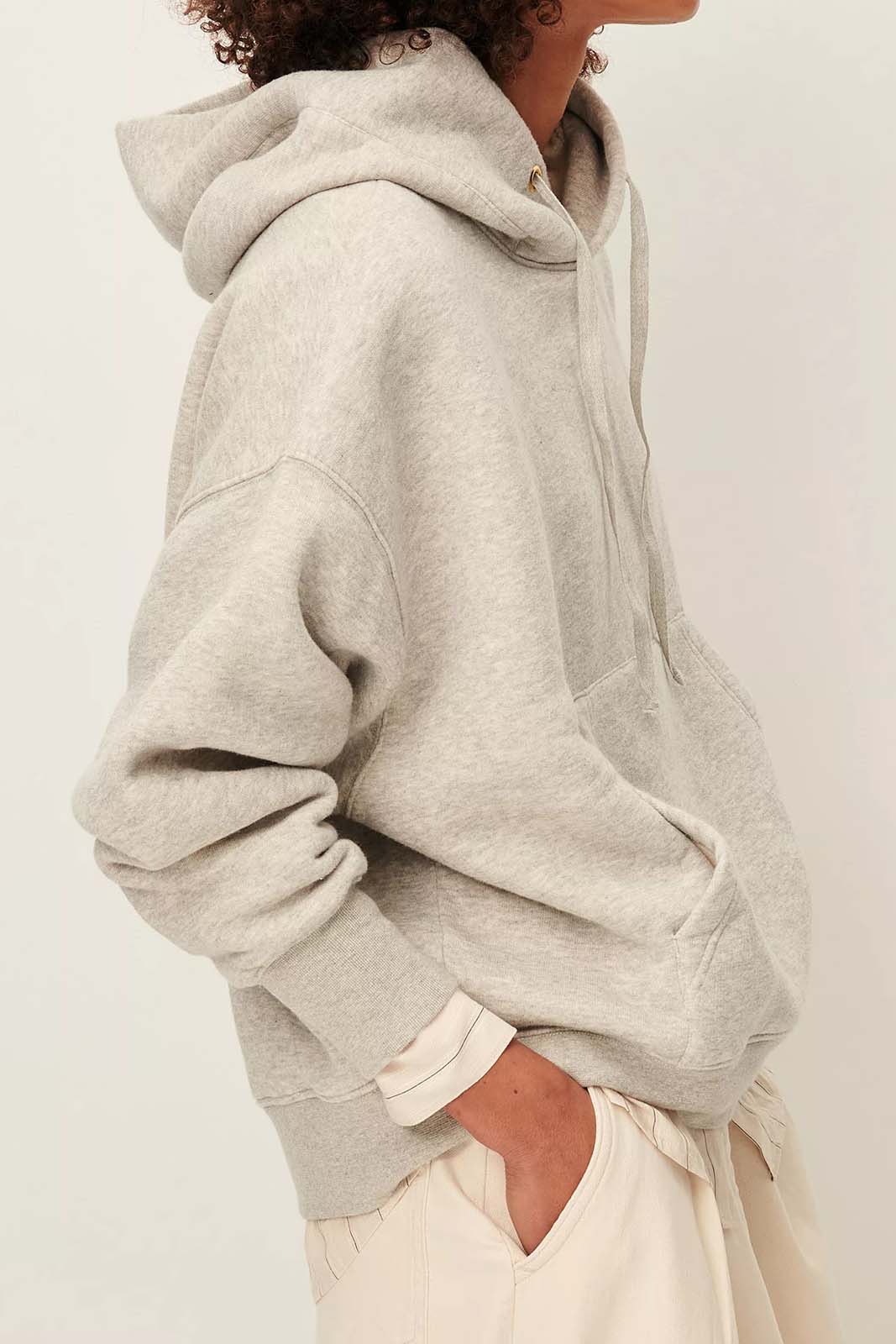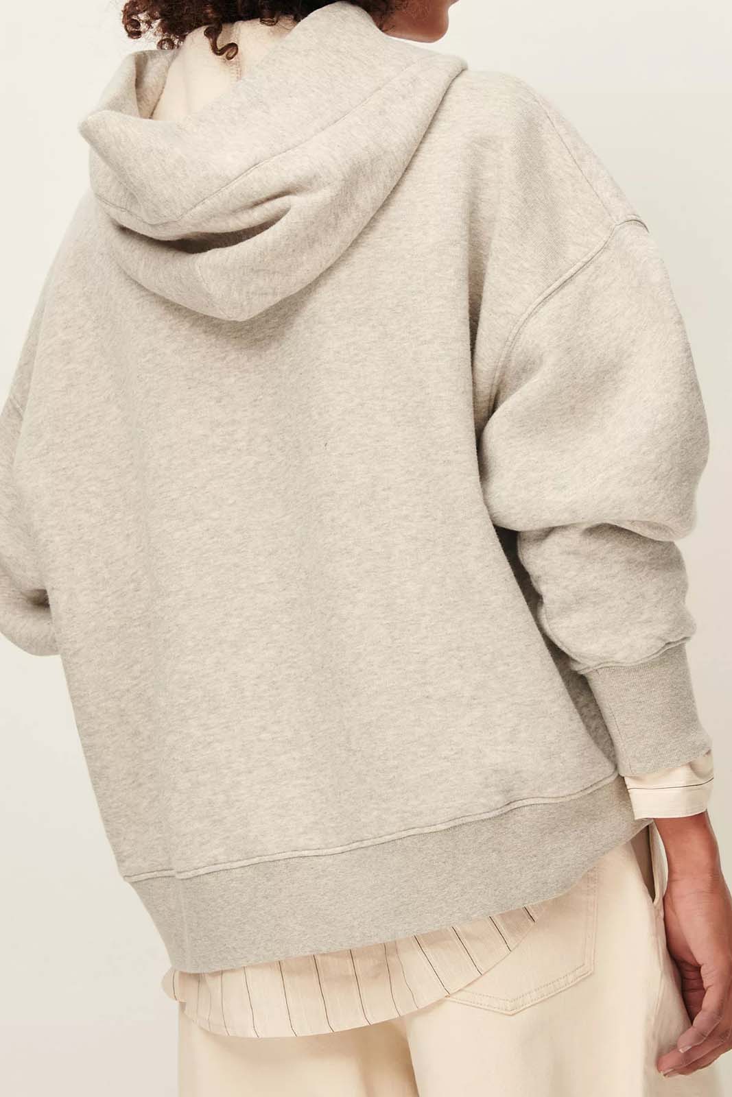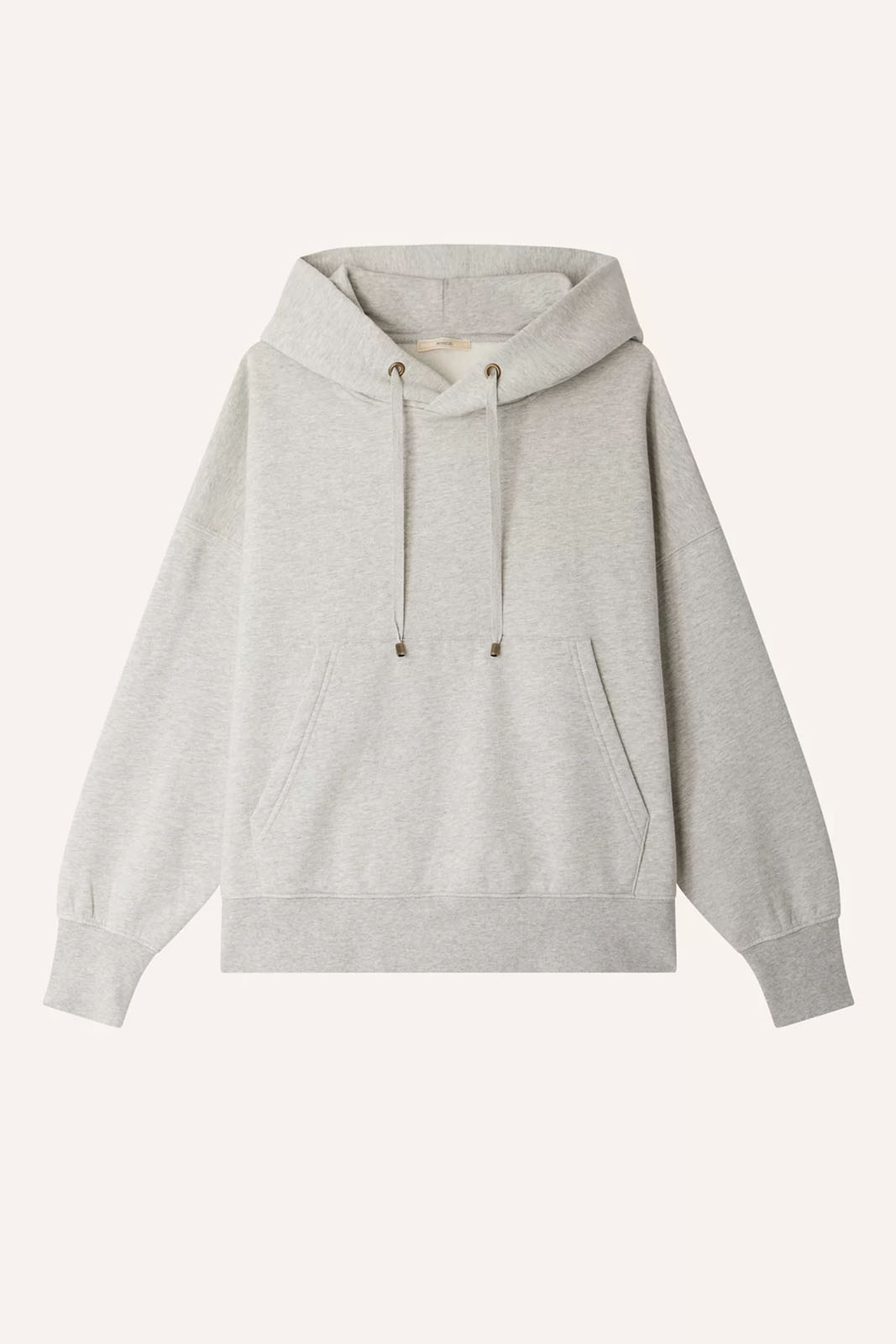 Das oversize Kapuzenshirt Hoodie in der Farbe Milkygrès von Sessun besteht aus 100% Baumwolle.
