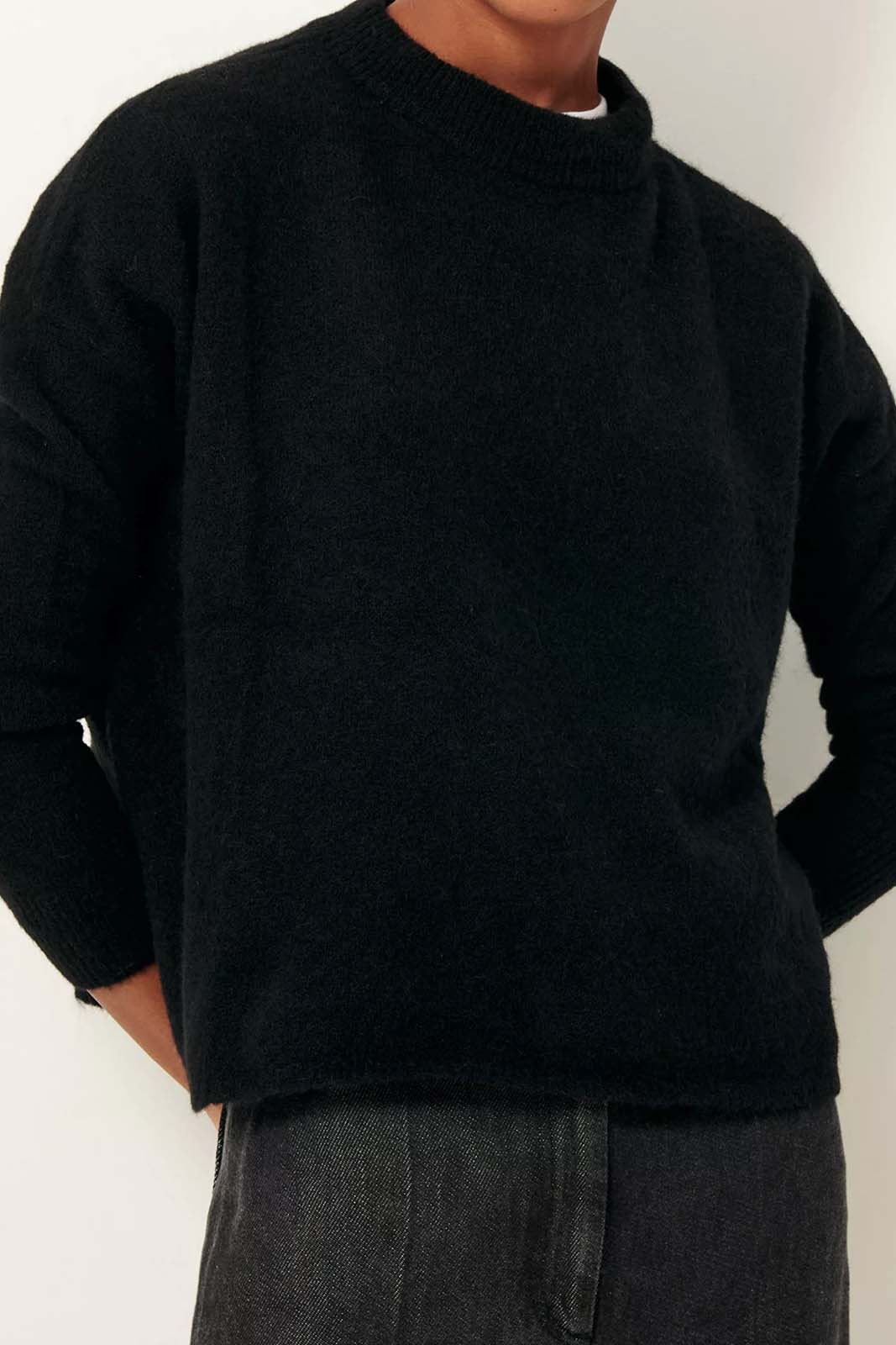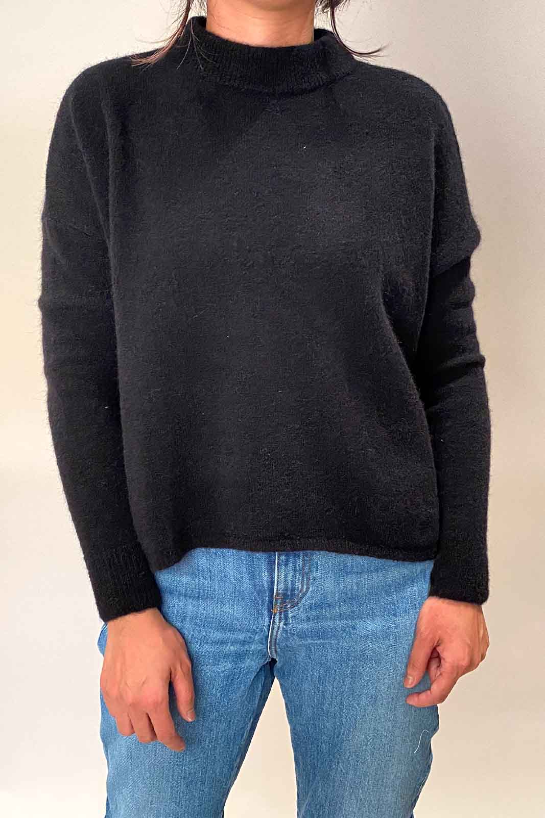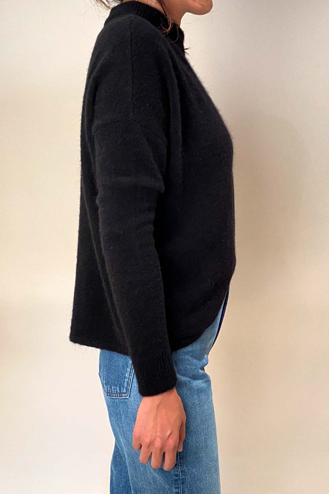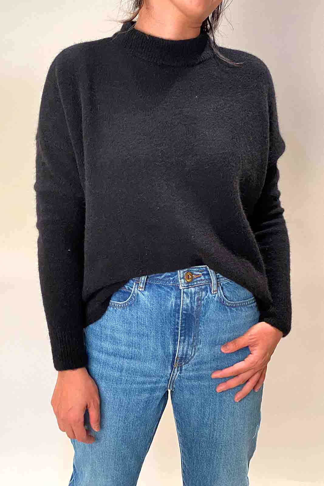 Der Pulli Kunlun in der Farbe Black von Sessun besteht aus 32% Merinowolle, 32% Alpaka, 30% Polyamid und 6% Elastan.