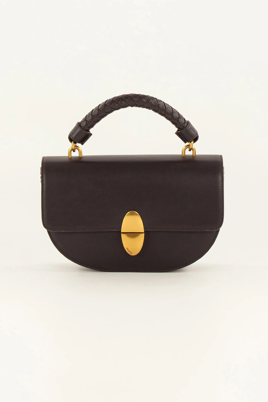 Die Tasche Round Tesoro in der Farbe Deep Coffea von Sessun besteht aus 100% Rindsleder.