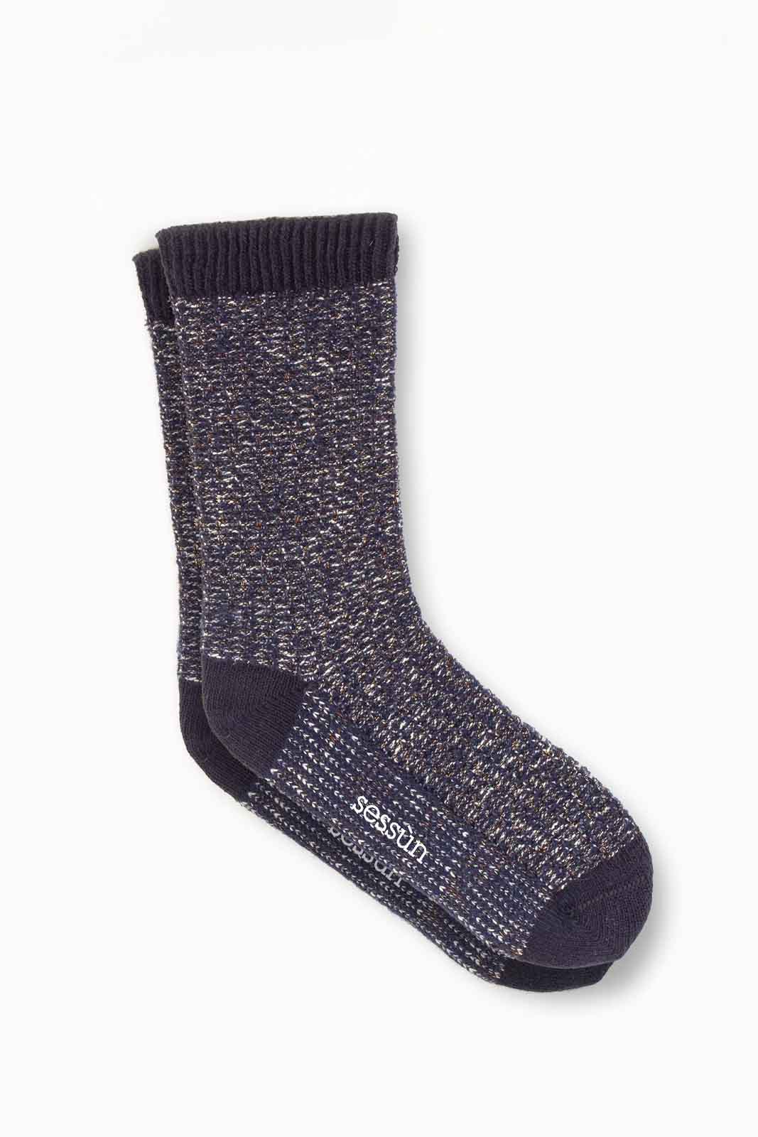 Die Socken Softy in der Farbe Indigo Blue von Sessun bestehen aus 53% Bauwolle, 2% Polyester, 23% Polyamid, 15% Acryl, 3% Mohair 3% Wolle und 2% Elastan.