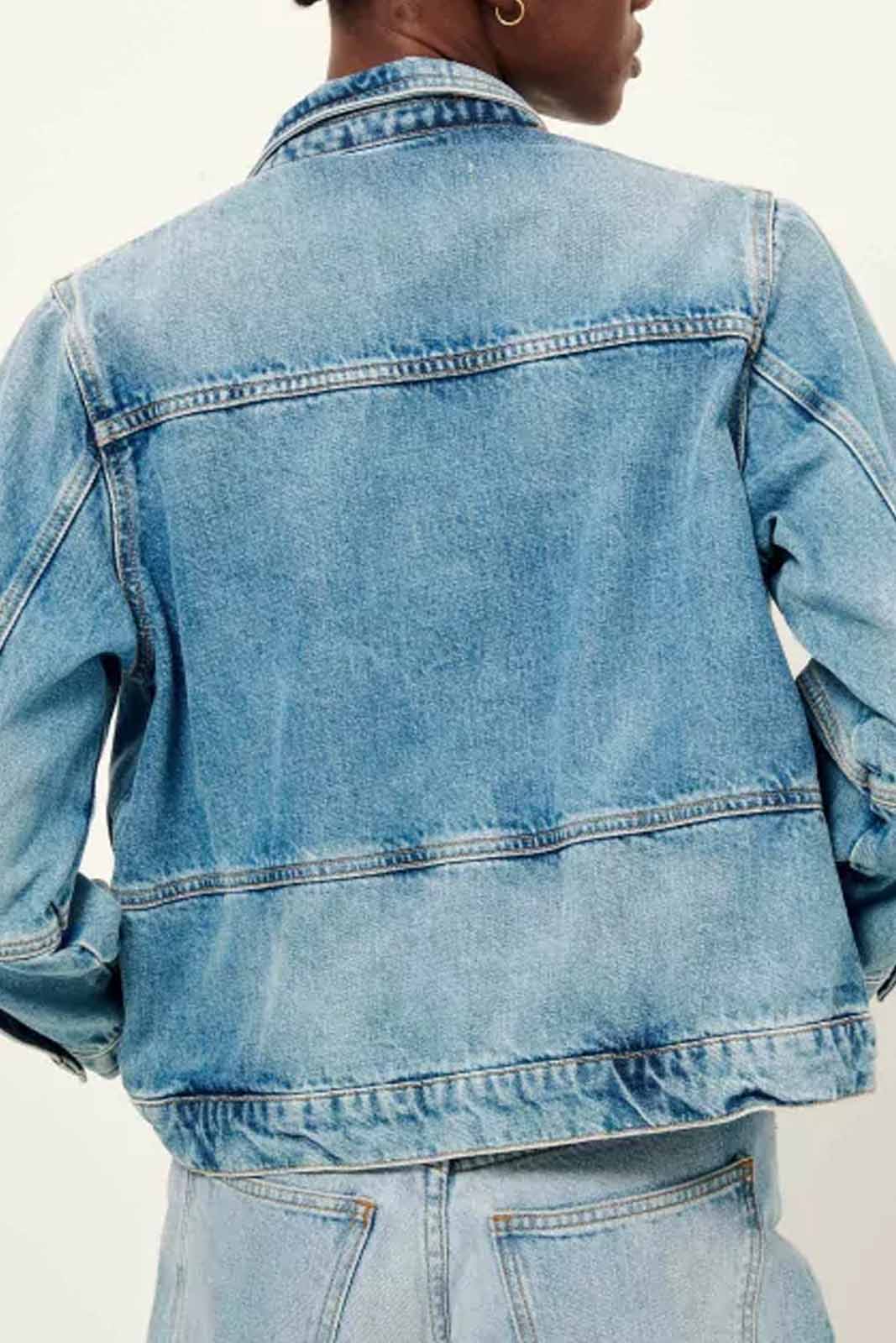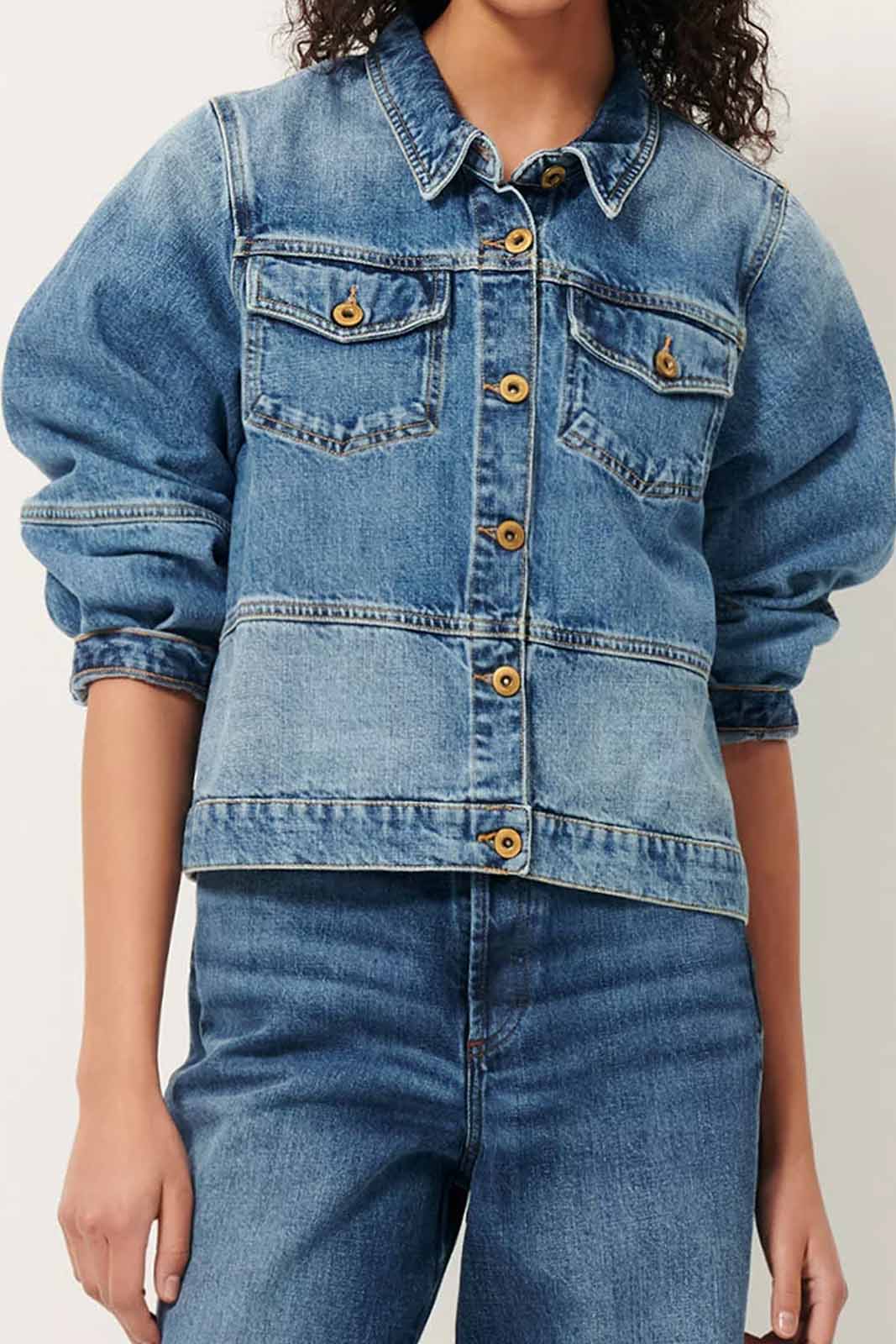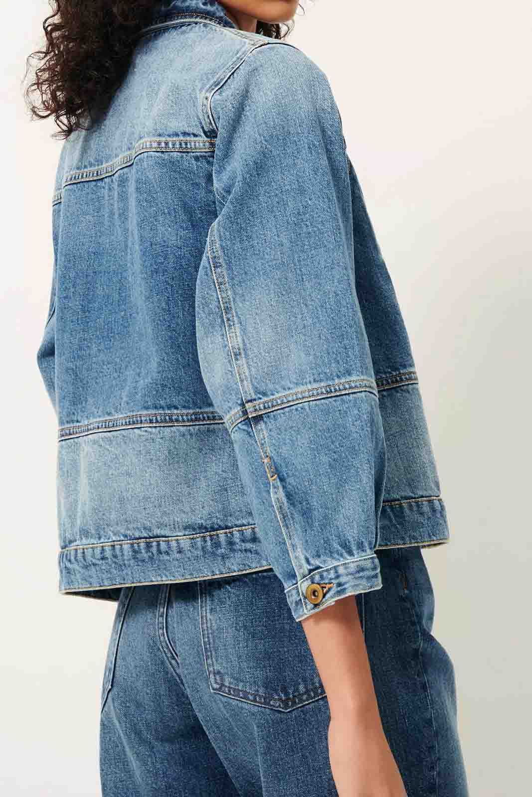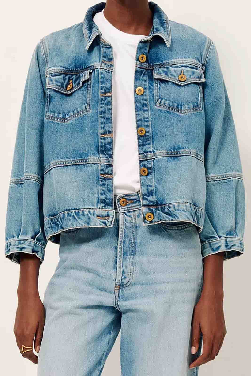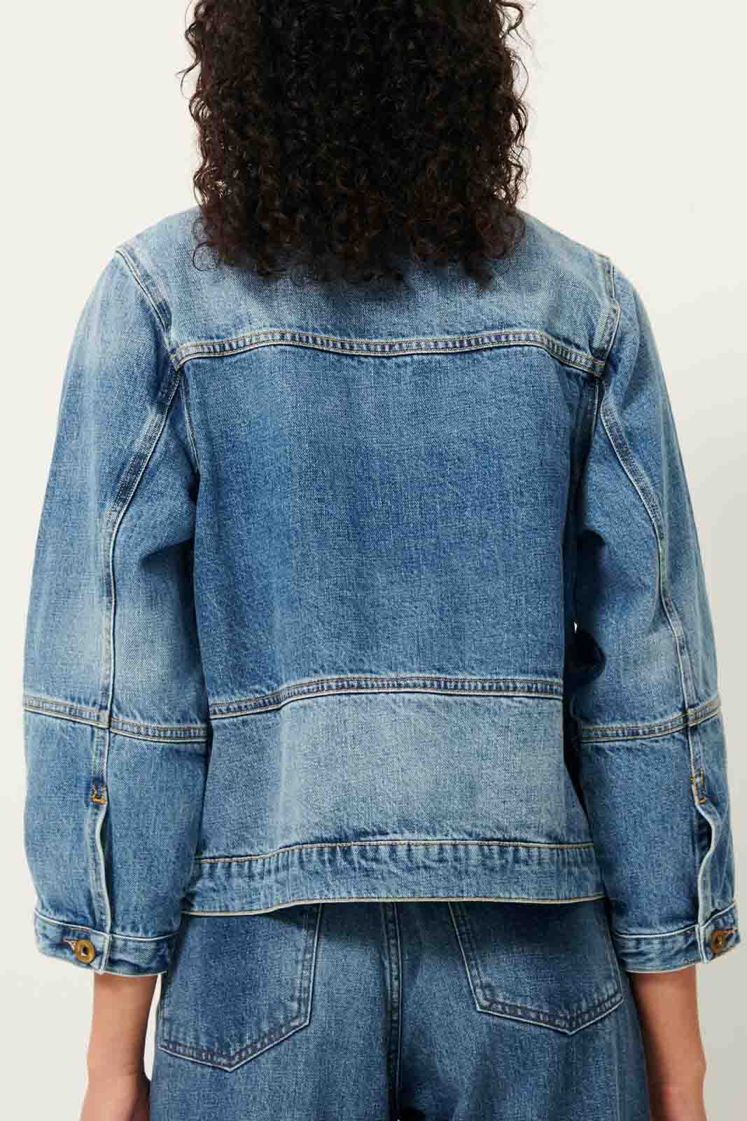 Die Jeans-Jacke Thelma in der Farbe Astral Blue von Sessun besteht aus 100% Baumwolle.