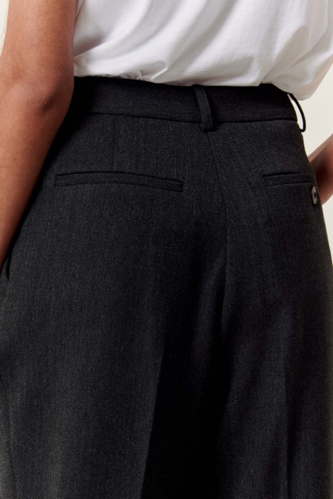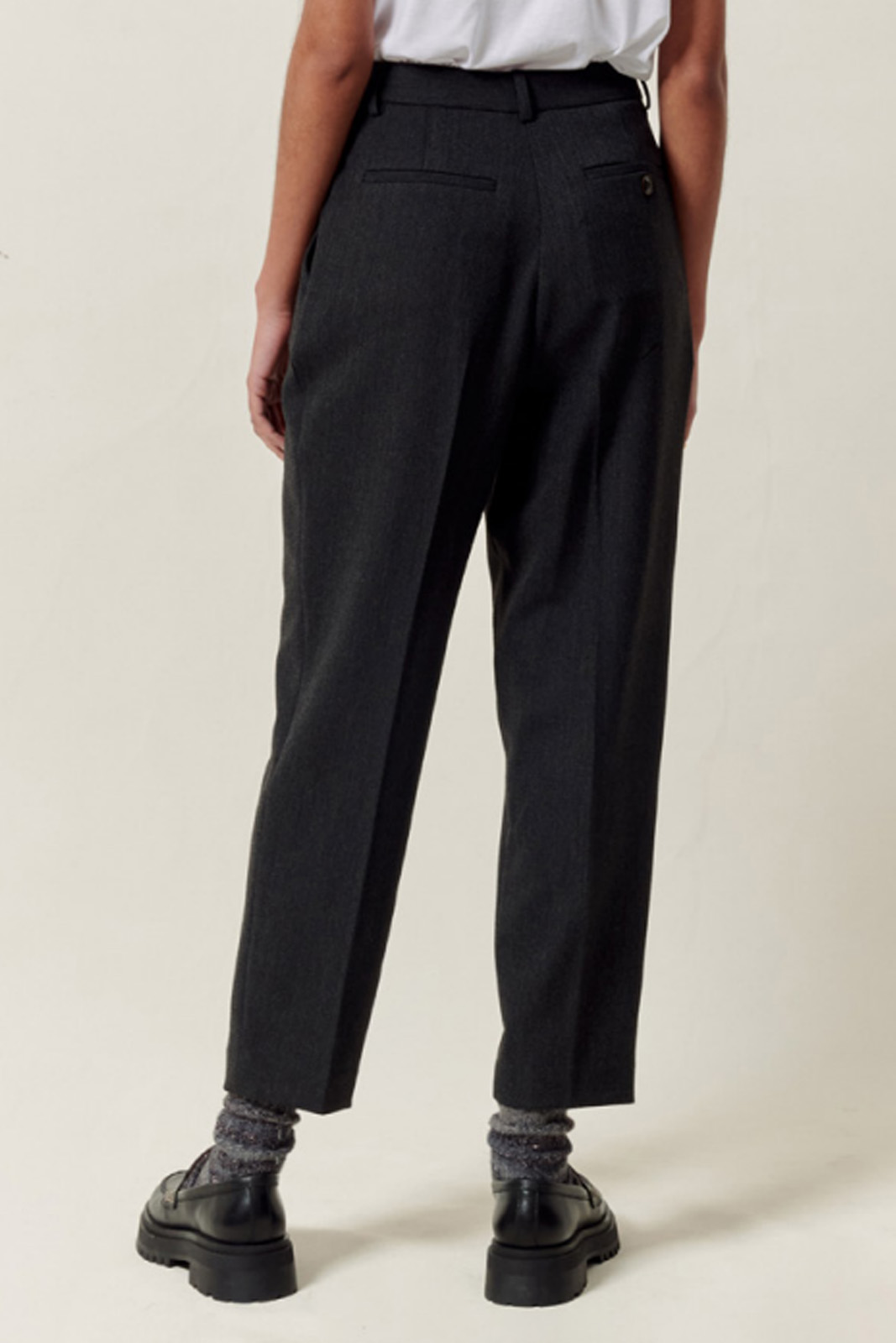 Die Hose Timothy in der Farbe Carbonella von Sessun besteht aus 62% Polyester, 26% Viskose Lenzing Ecovero, 9% Wolle und 3% Elastan.