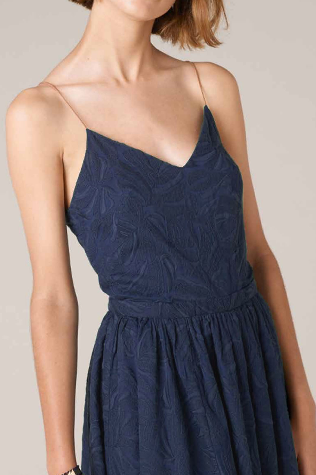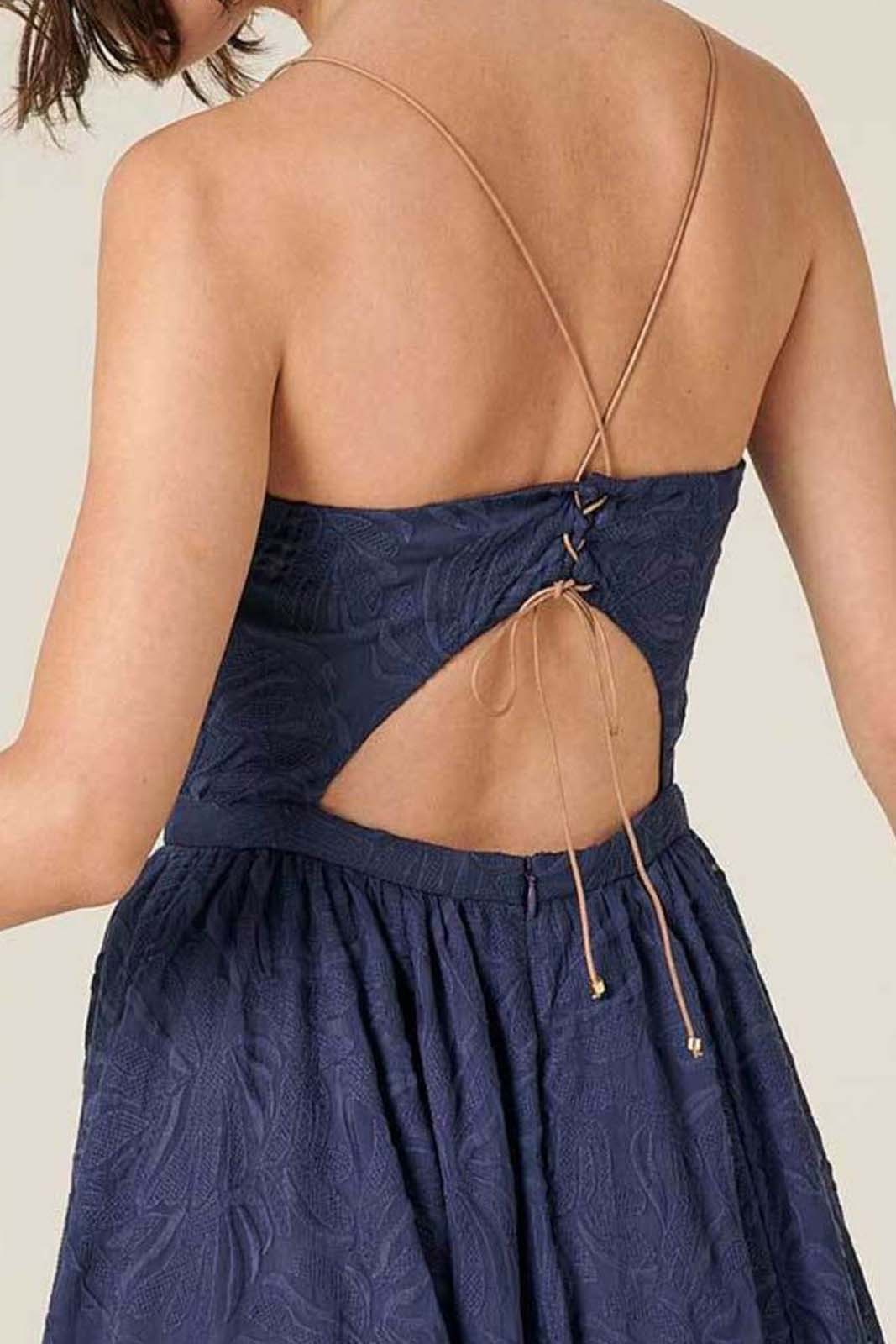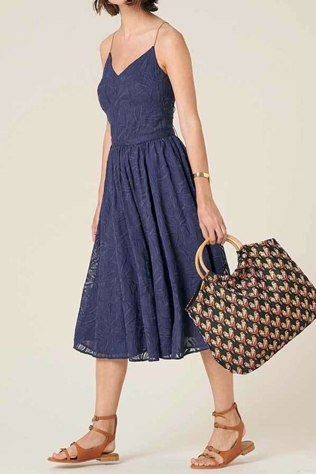 Das Kleid Tropic Night in der Farbe Ink Violet von Sessun besteht aus 50% Baumwolle und 50% Polyester.