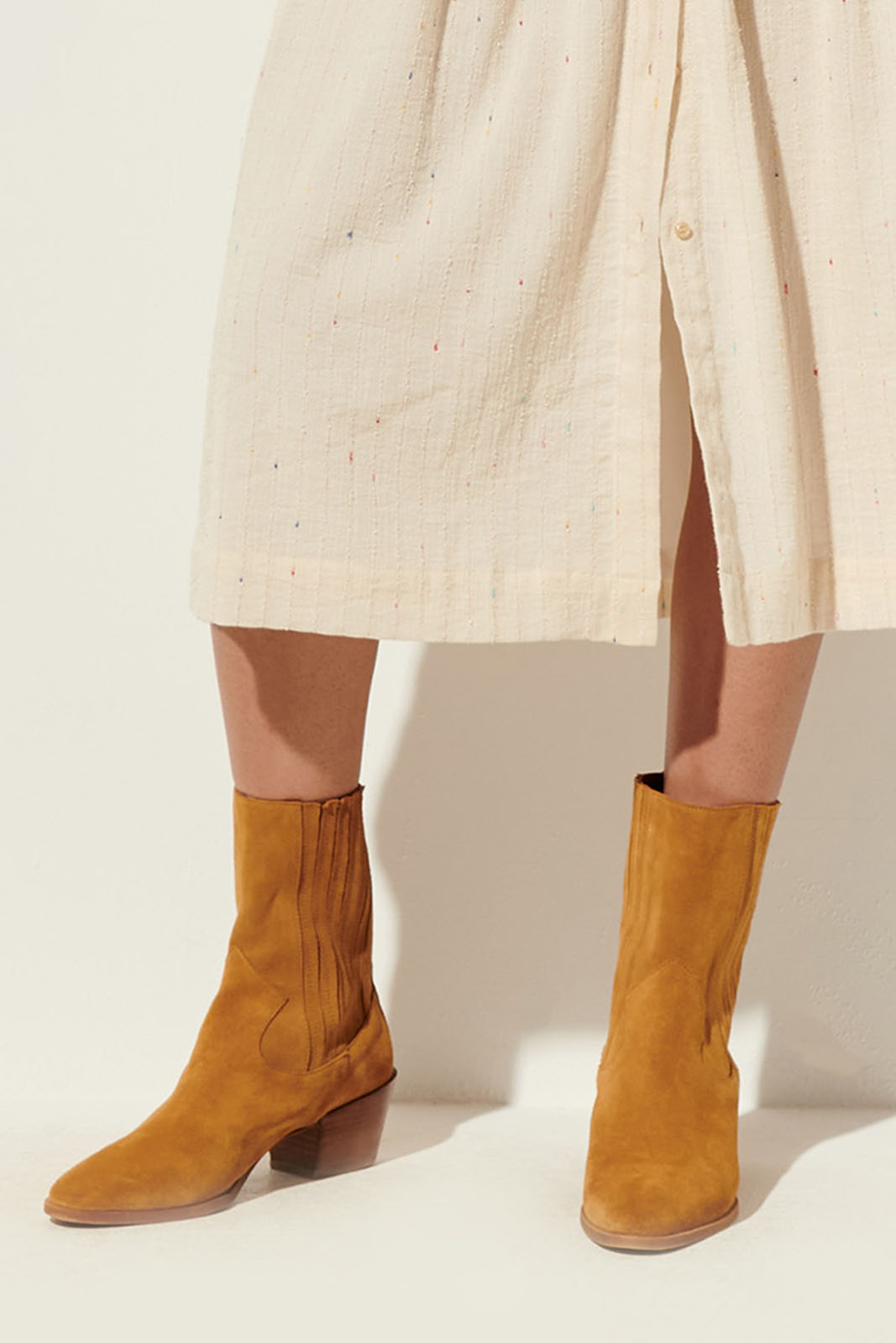 Die Schuhe Wayne in der Farbe Honey Suede von Sessun bestehen aus 100% Spaltleder.