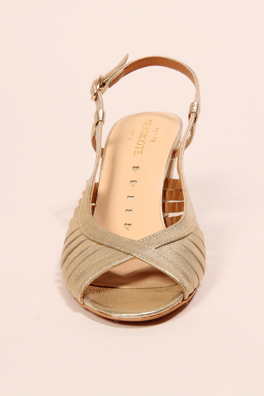 Die Schuhe Renato in der Farbe Champagne von Petite Mendigote bestehen aus 100% Leder.