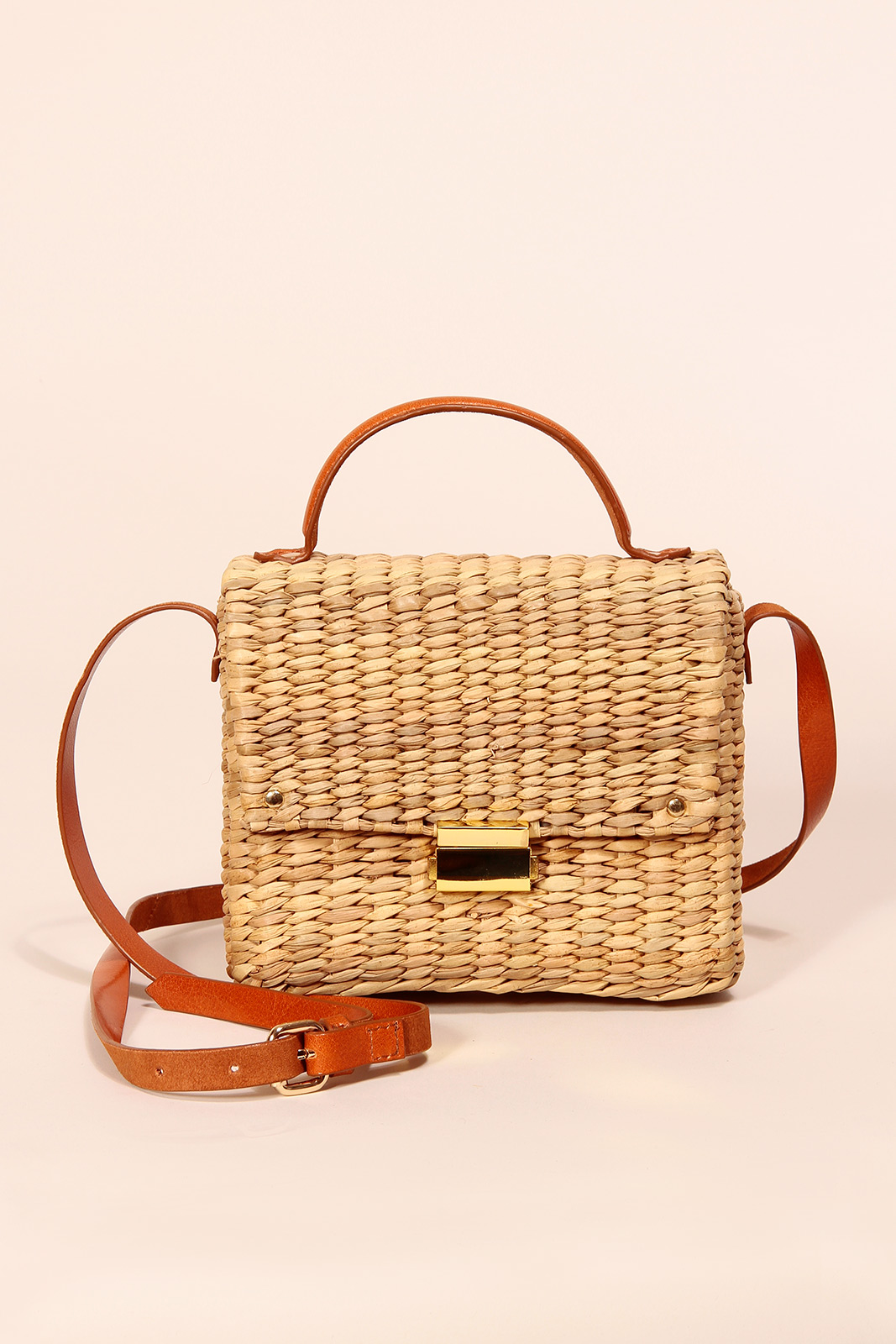Die Tasche Bardot in der Farbe Natural von Petite Mendigote besteht aus Straw und Leder.