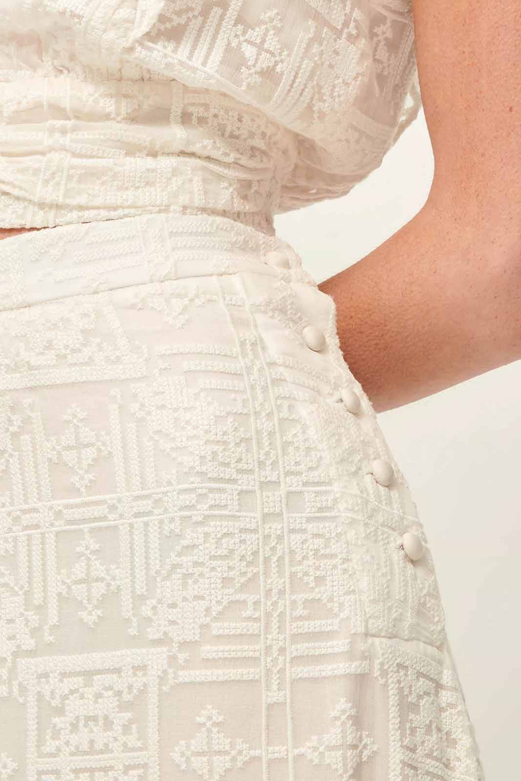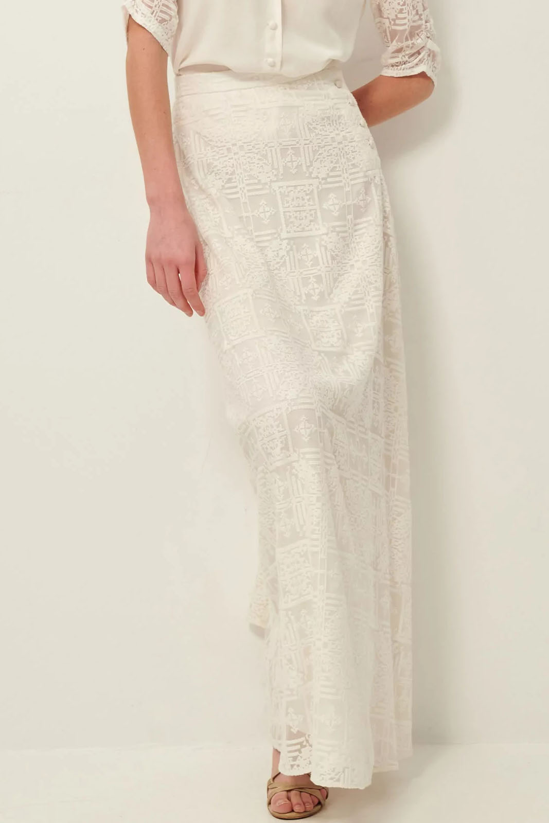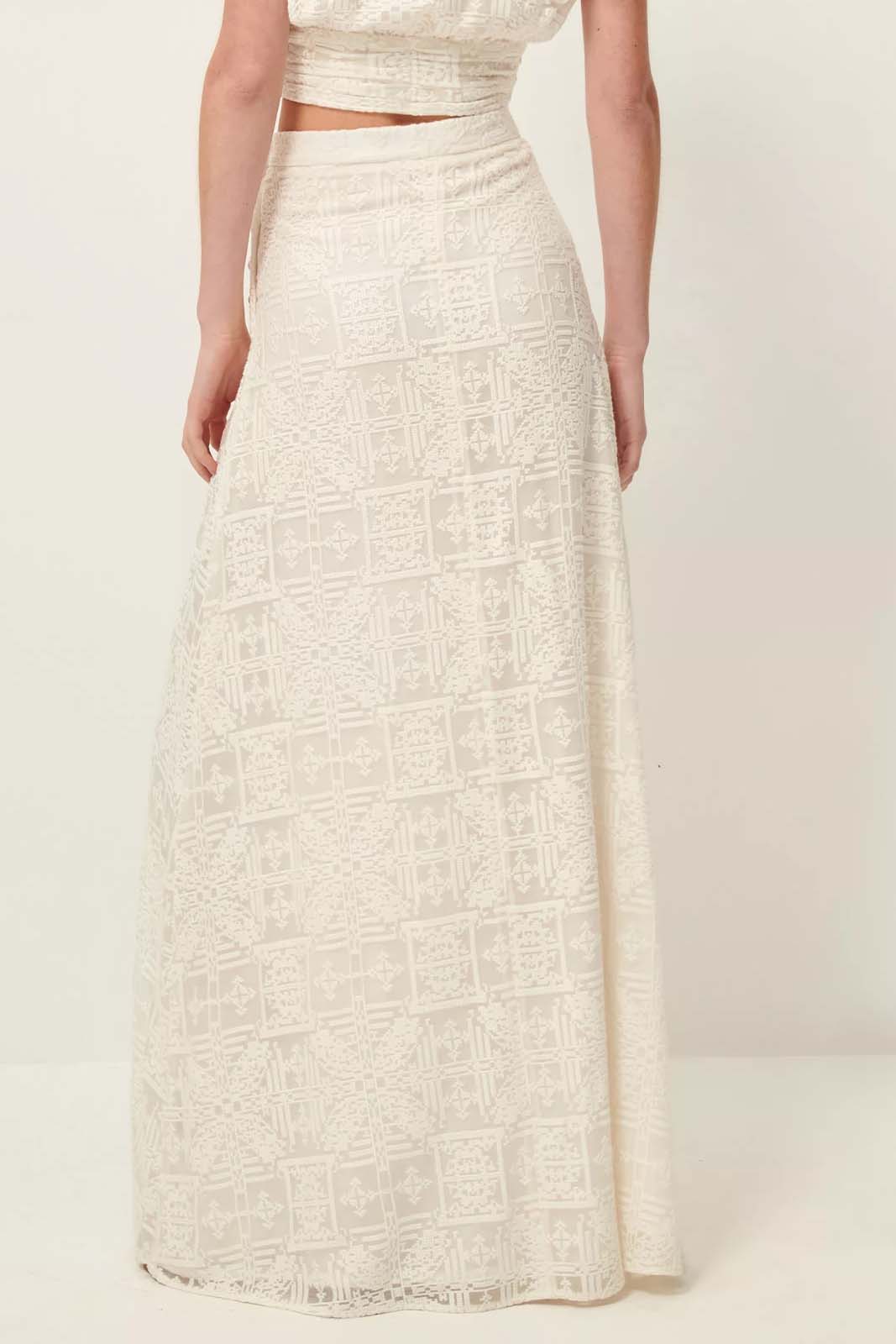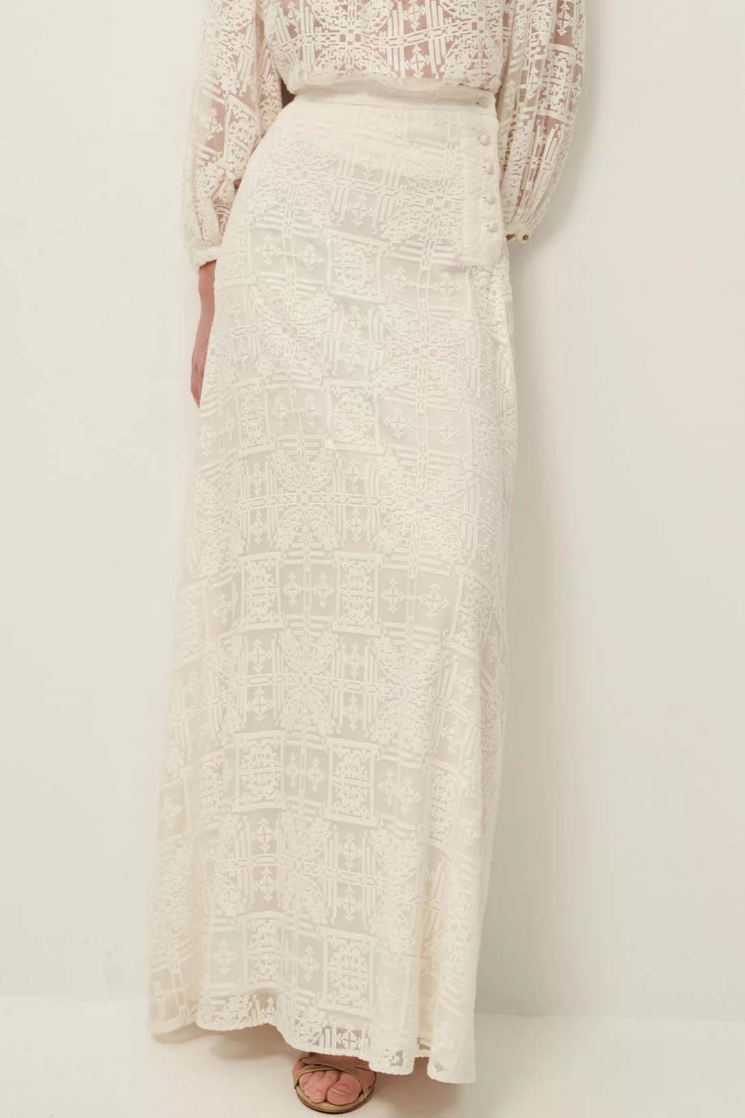 Der Rock Eternity in der Farbe Antic White von Sessun Wedding besteht aus 50% Seide und 50% Viscose.