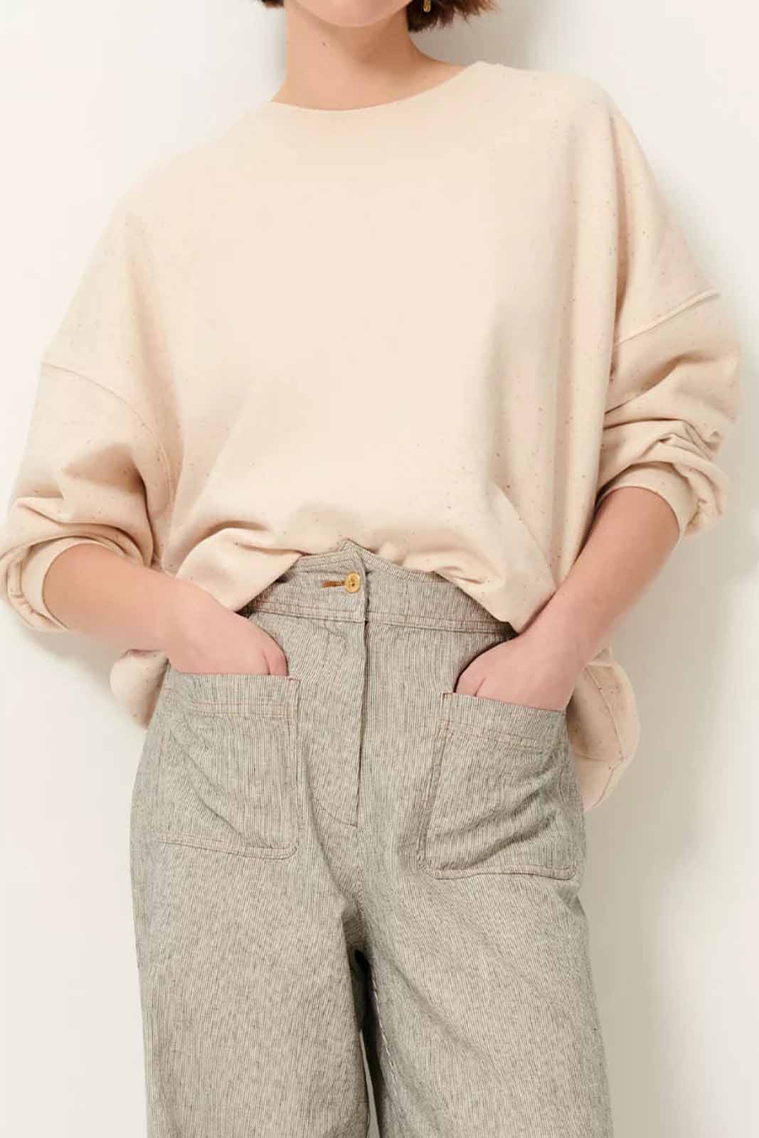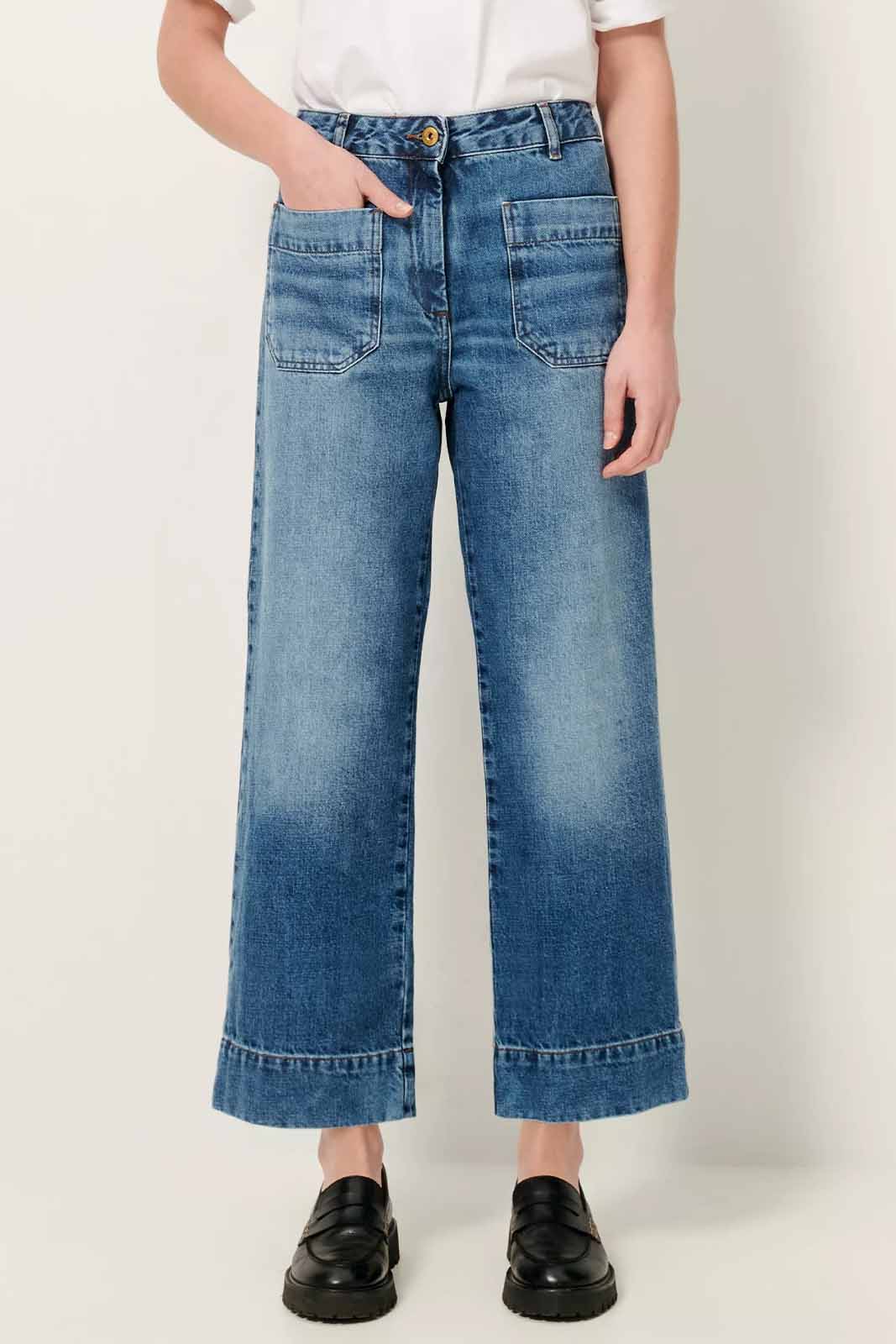 Die A-Form Jeans Seakey in der Farbe Vintag Blue von Sessun besteht aus 100% Baumwolle.