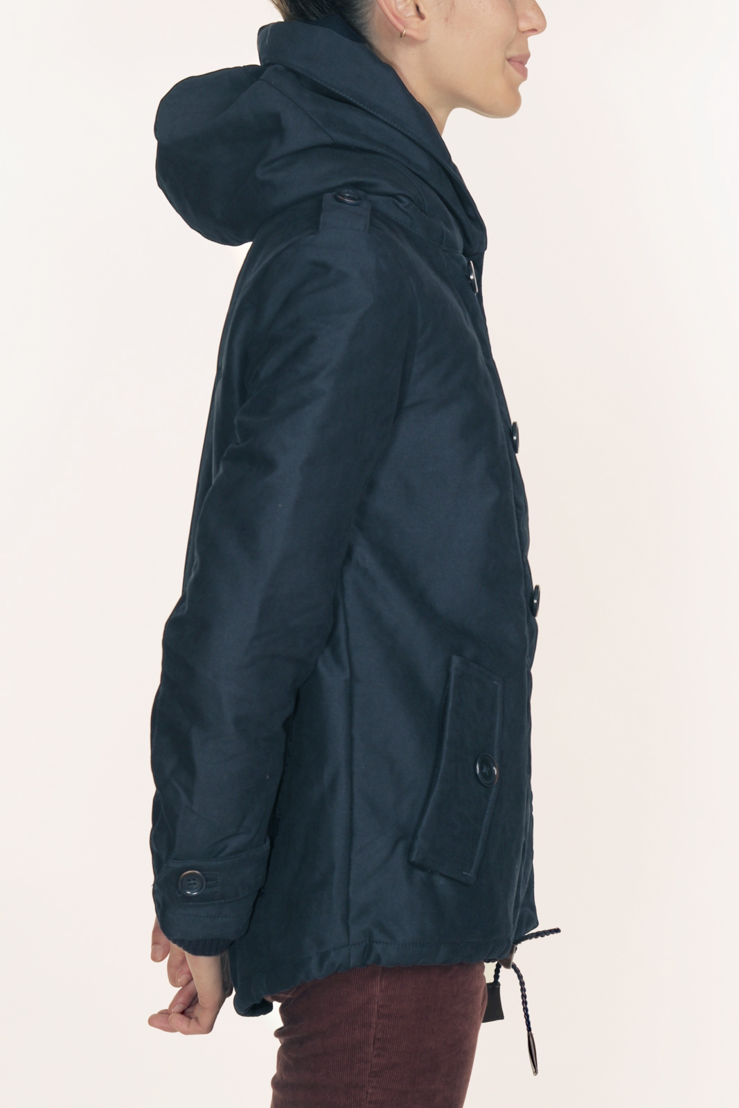 Der Parka Sandison in navy von Sessun besteht aus festem Twill. 77% Baumwolle, 16% Polyester und 7% Nylon. Das Innenfutter inclusive Kapuze besteht aus warmen Fake Sheep.