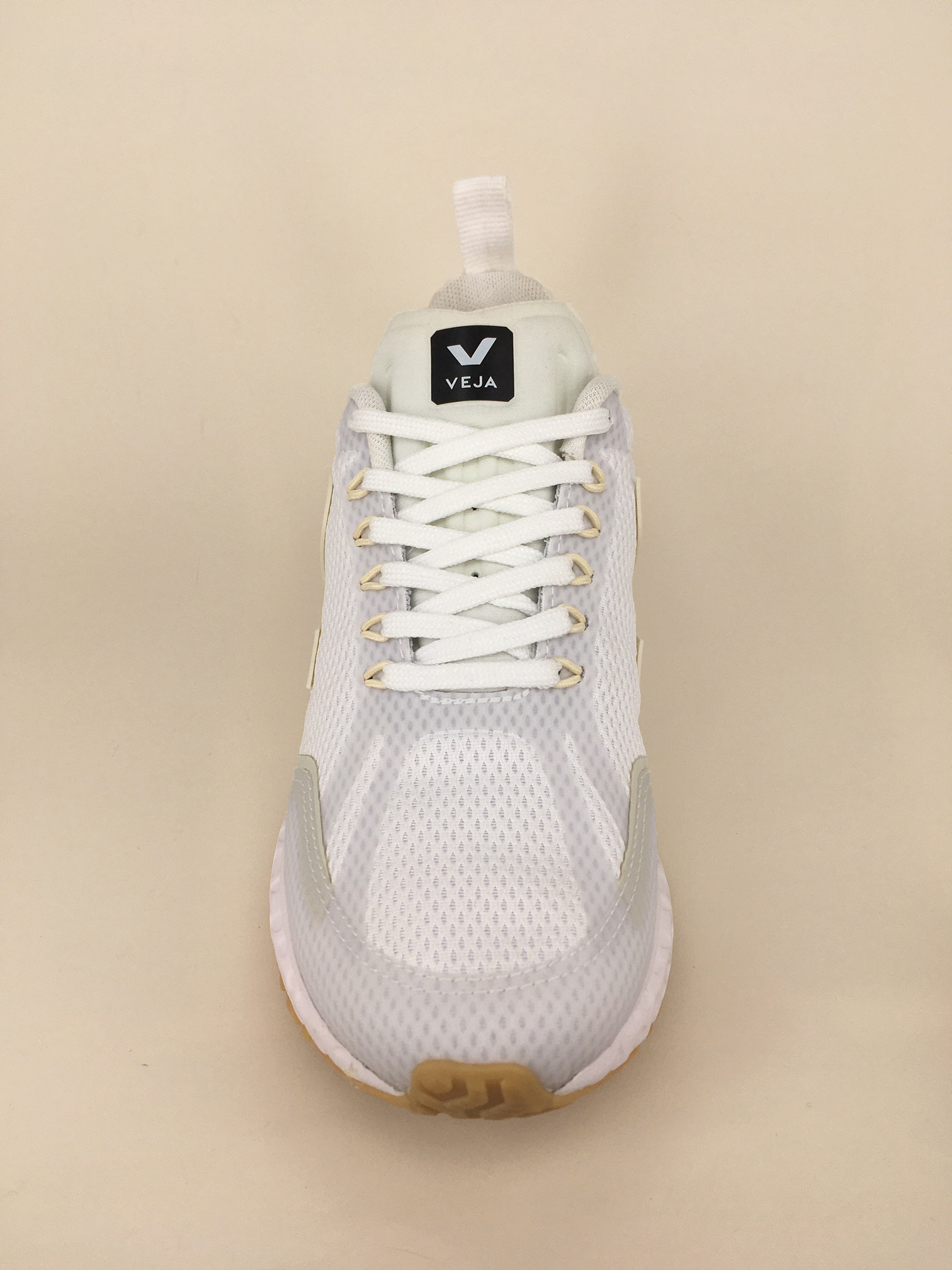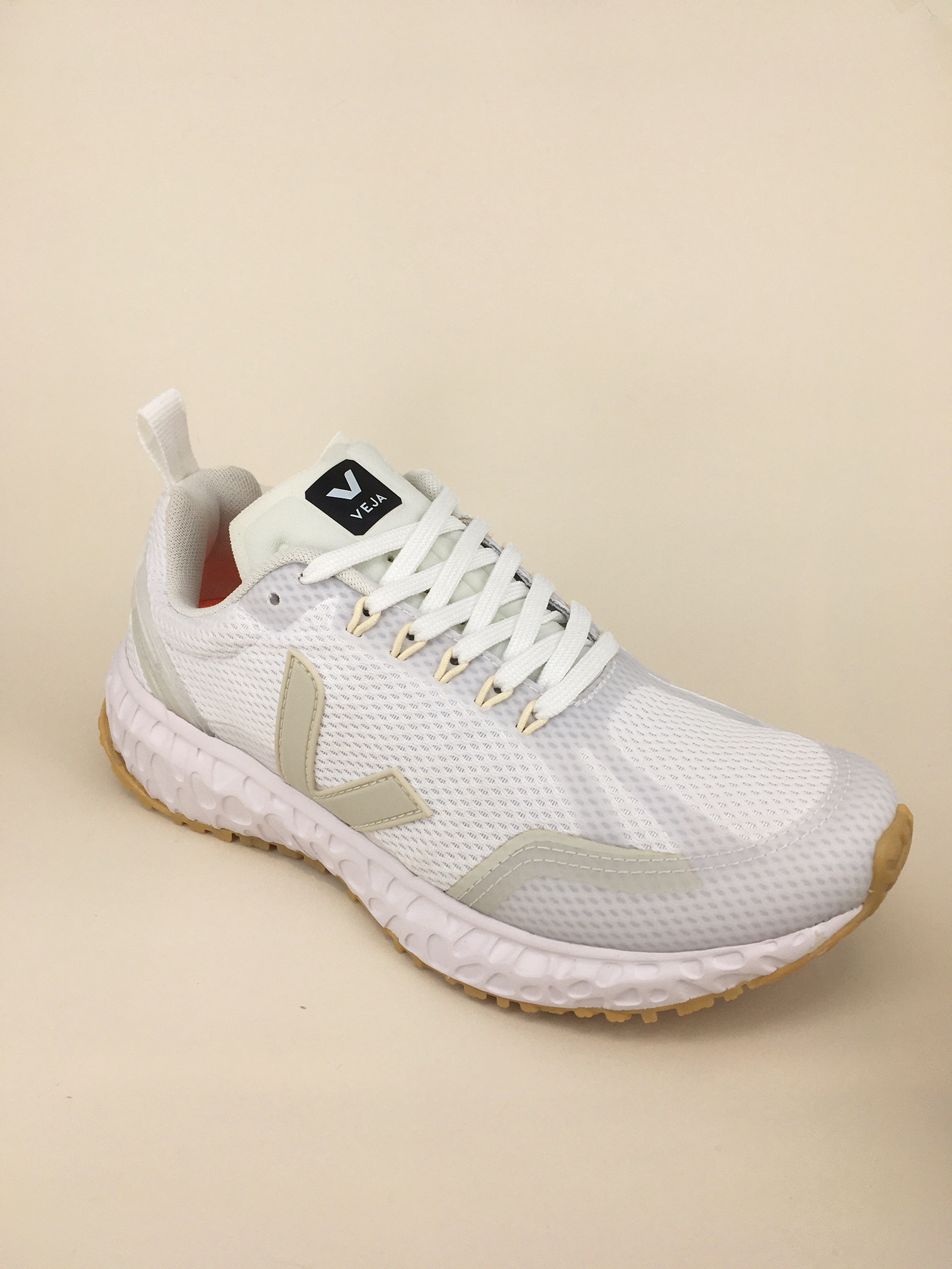 Die Running Schuhe Condor white pierre von Veja bestehen aus 53% bio und recycled-base Materialien, unter andere Alveomesh (100% recycled plastic bottle) und wildem Gummi aus Amazonien.